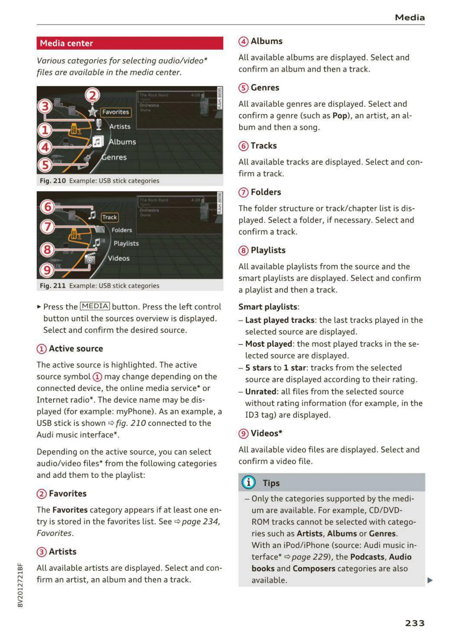 c> page 229), the Podcasts, Audio