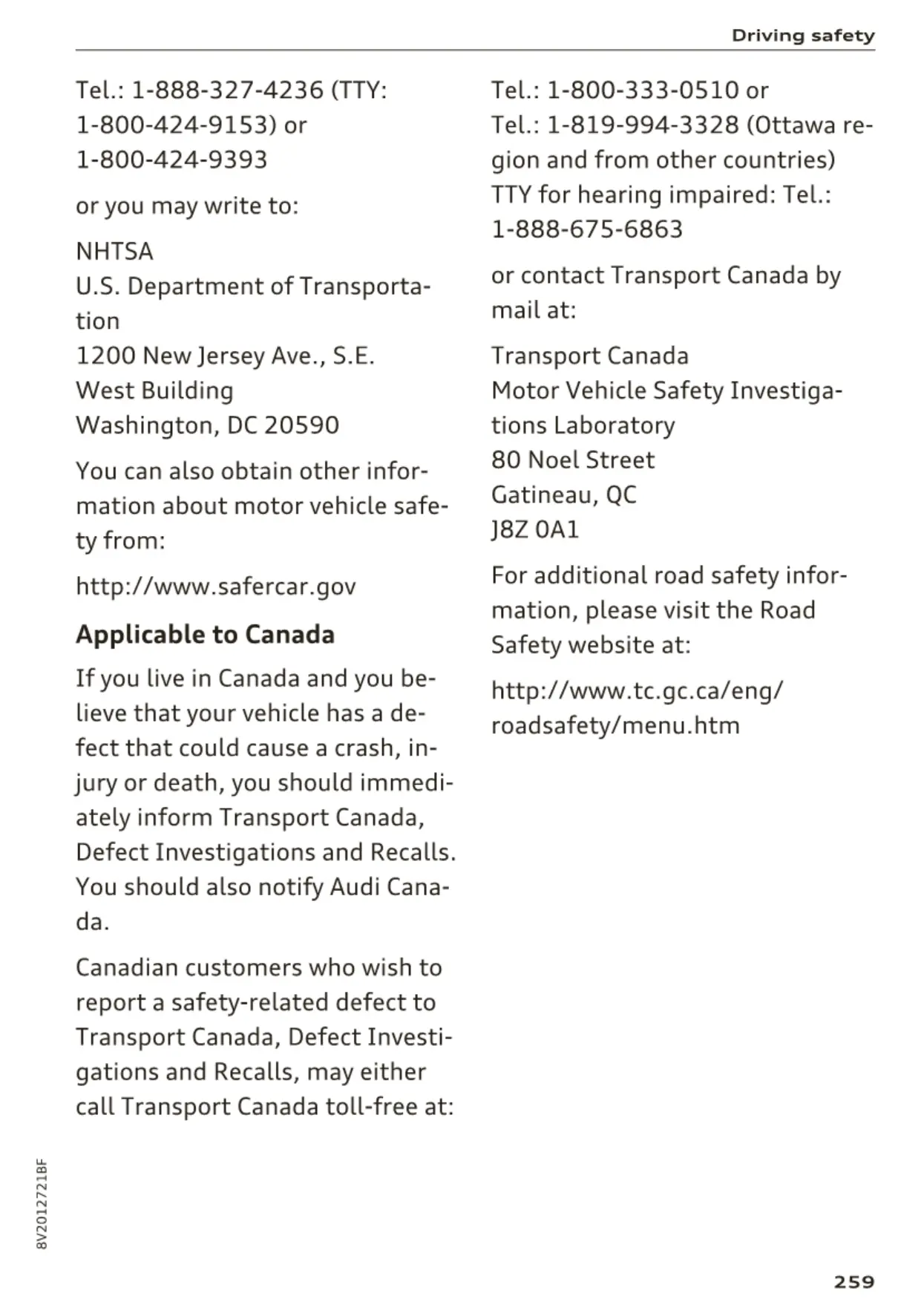 call Transport Canada toll -free at :