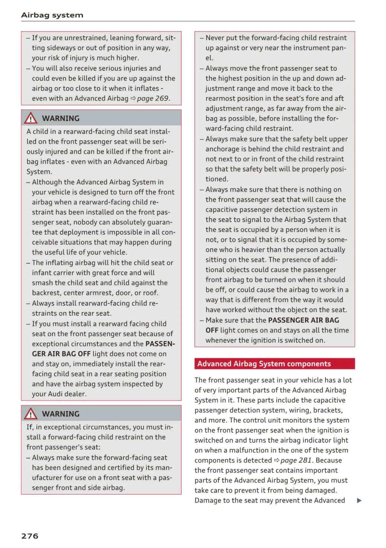 - Although the Advanced Airbag System in