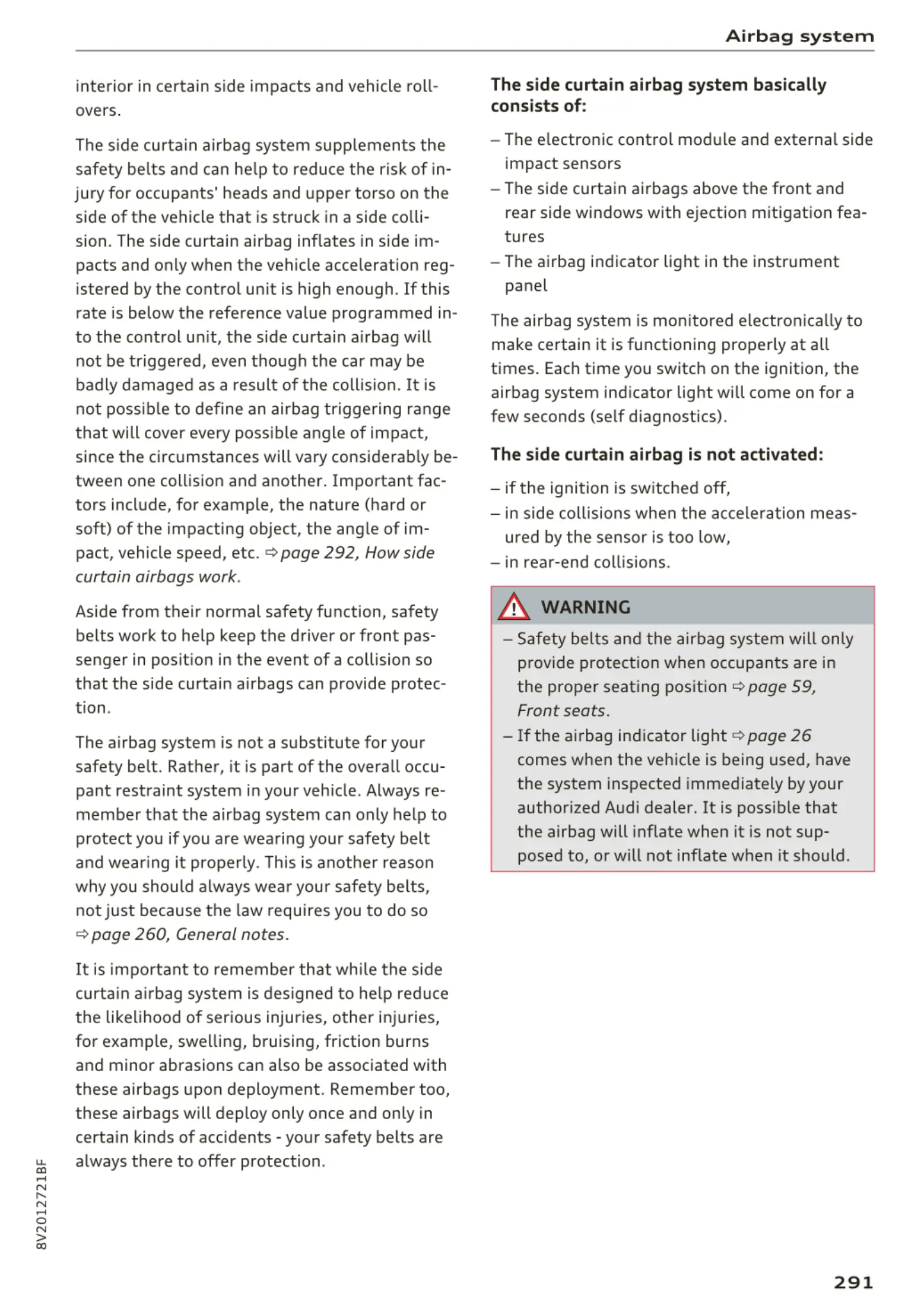 The airbag system is mon itored electro nica lly to