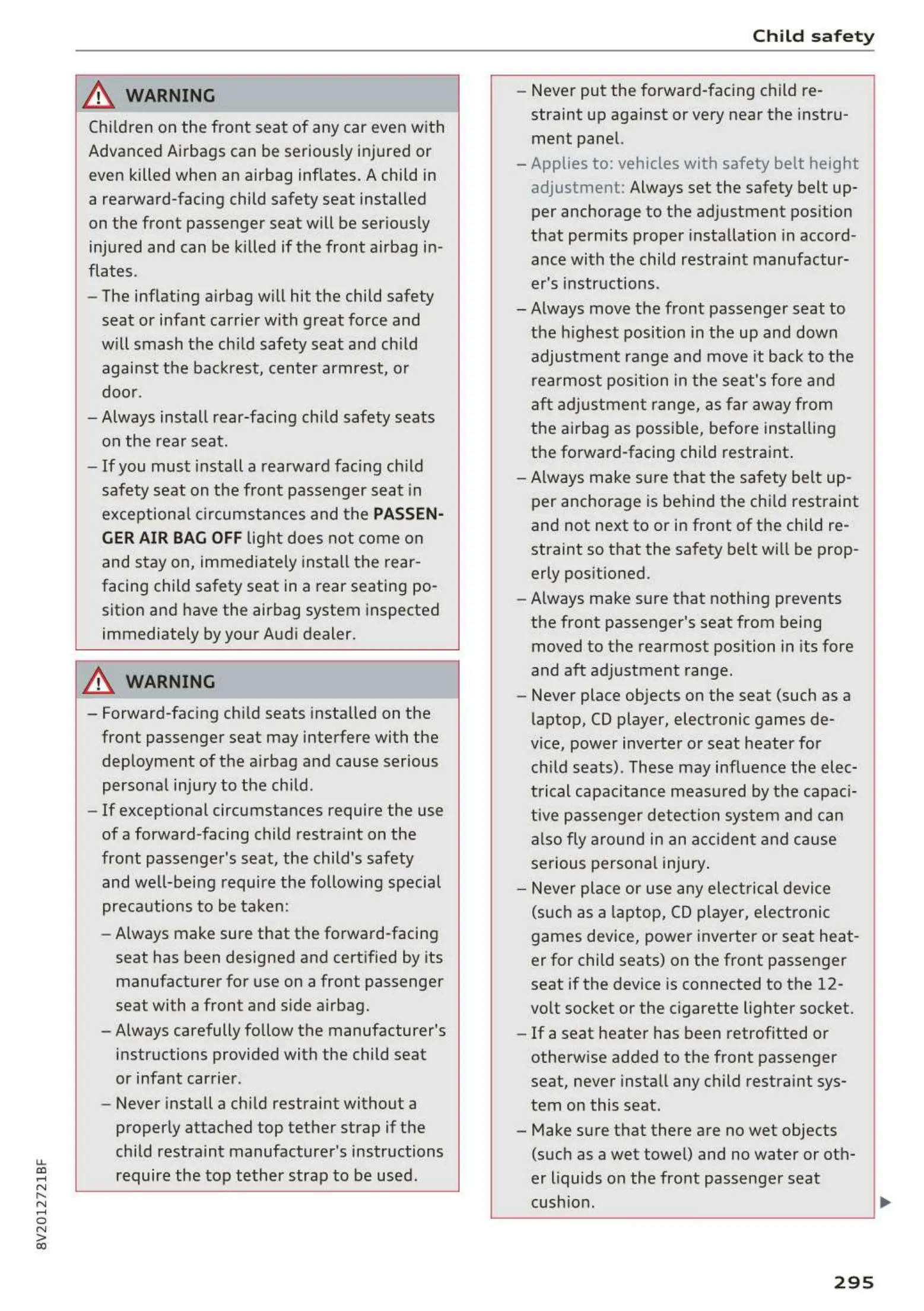 er for child seats) on the front passenger