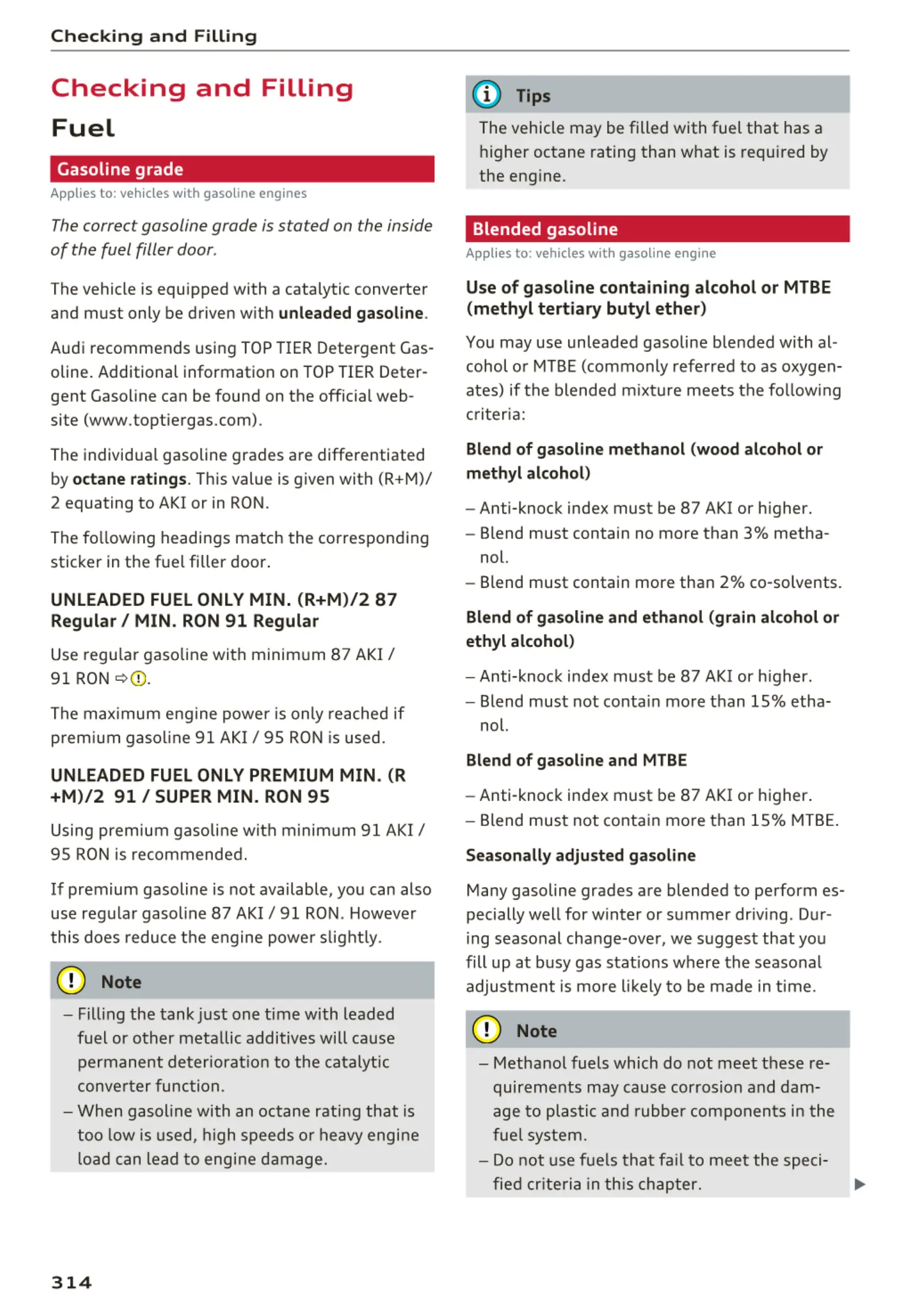 Audi recommends using TOP TIER Detergent Gas-