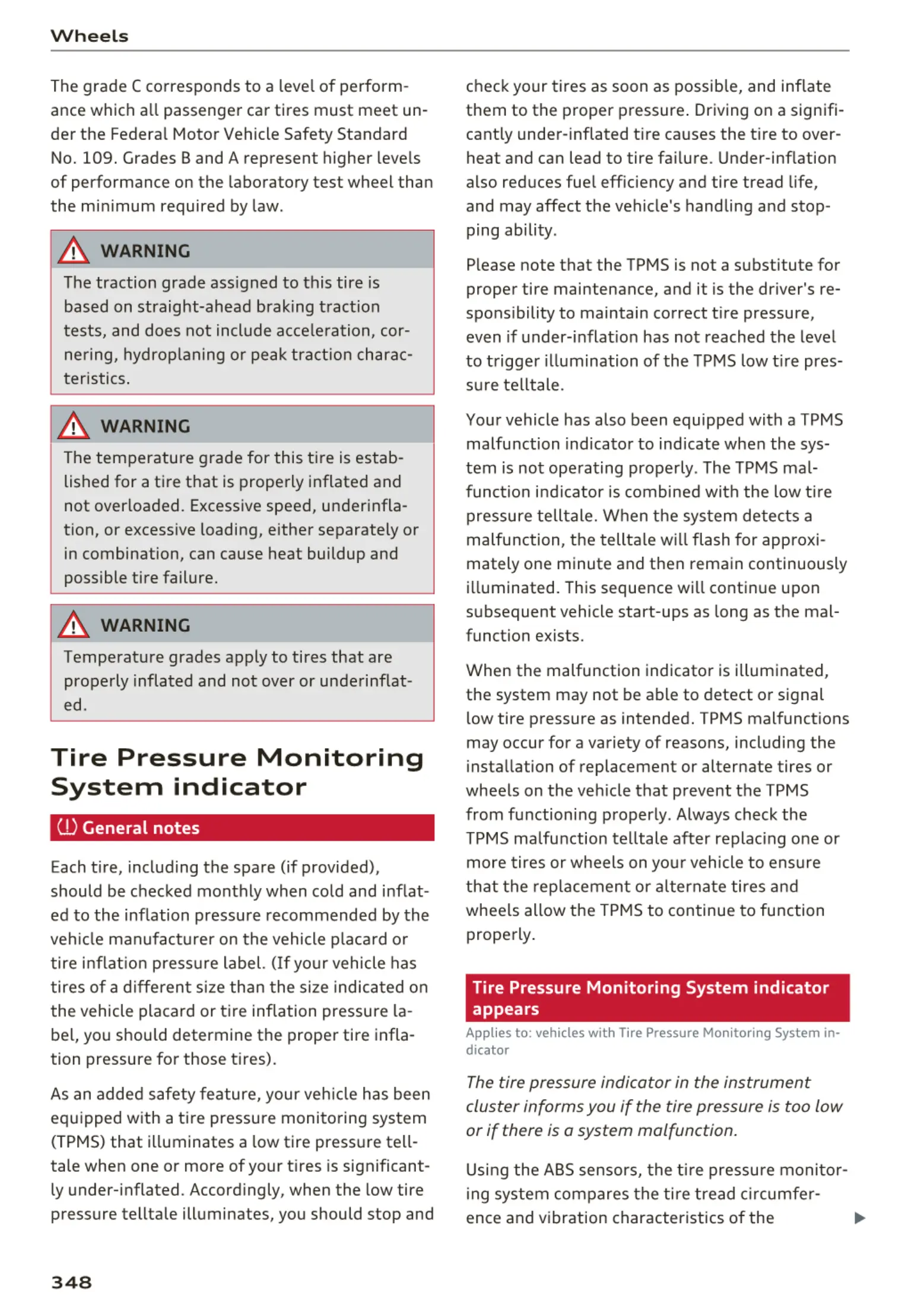 Please note that the TPMS is not a substitute for