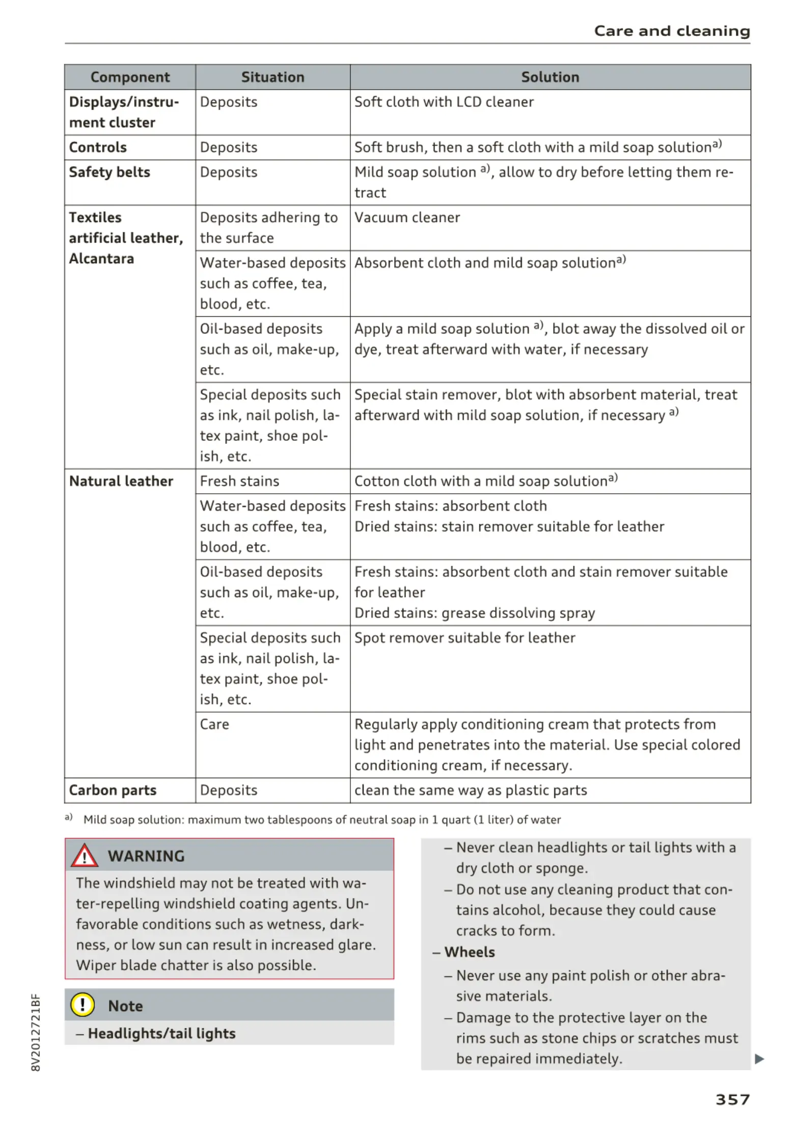a) Mild soap solut ion: maximu m two tablespoons of neut ral soap in 1 quart (1 liter) of water