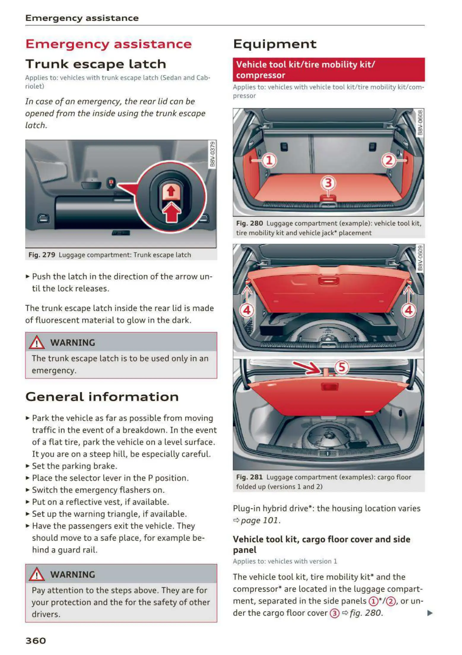 Fig. 279 Luggage compartment: Trunk esc ape latch