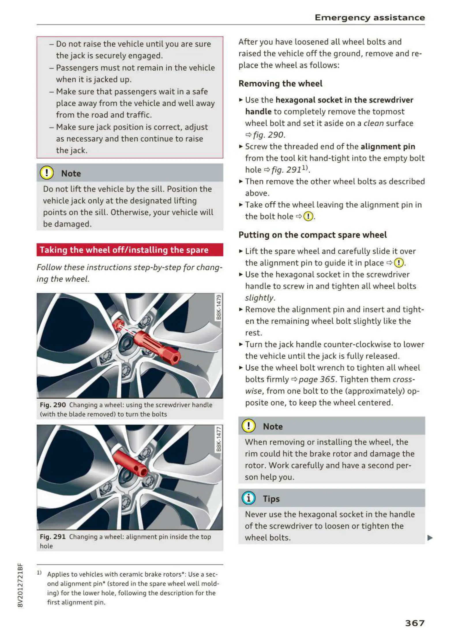 Fig. 290 Changing a wheel: using th e screwdr iver ha ndle