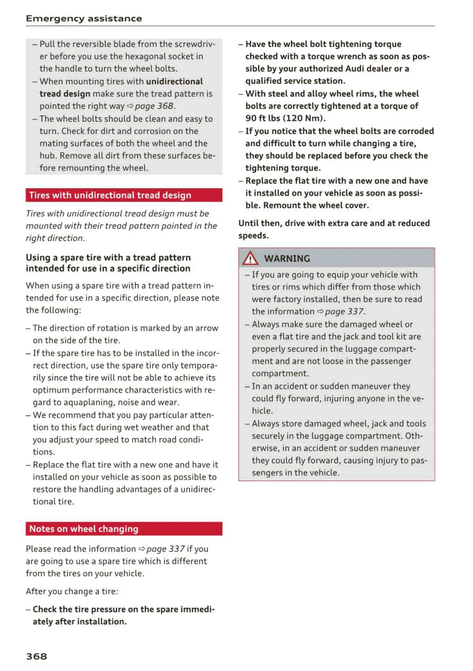 rect d irection, use the spare tire only tempora-