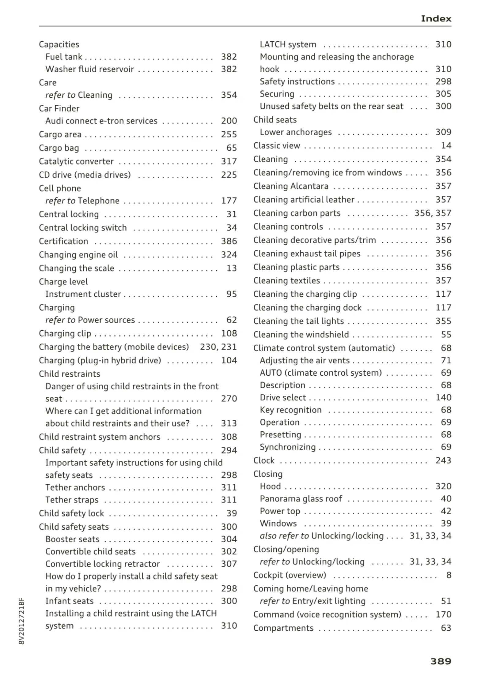 Cleaning Alcantara . . . . . . . . . . . . . . . . . . . . 357