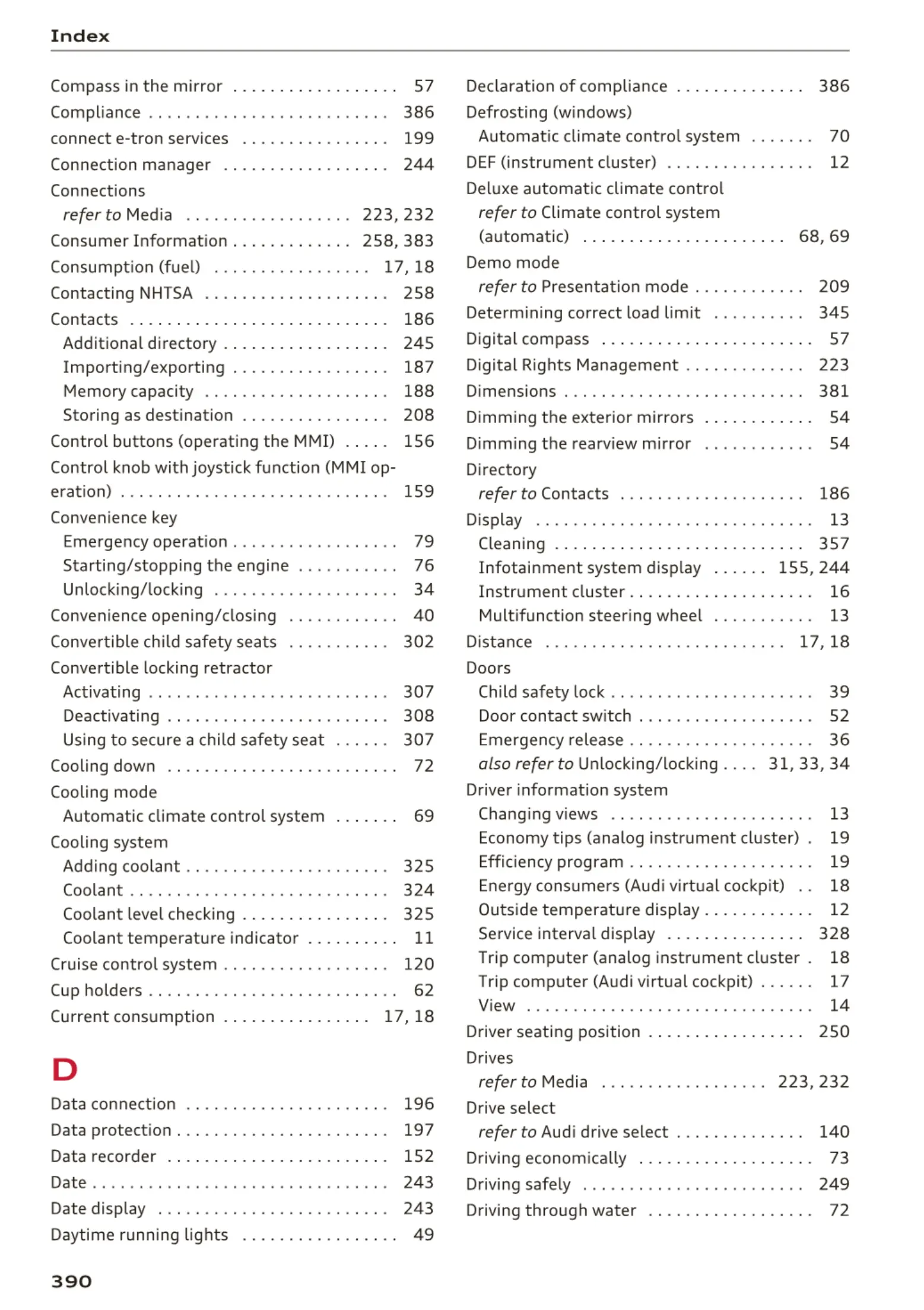 refer to Aud i drive select . . . . . . . . . . . . . . 140