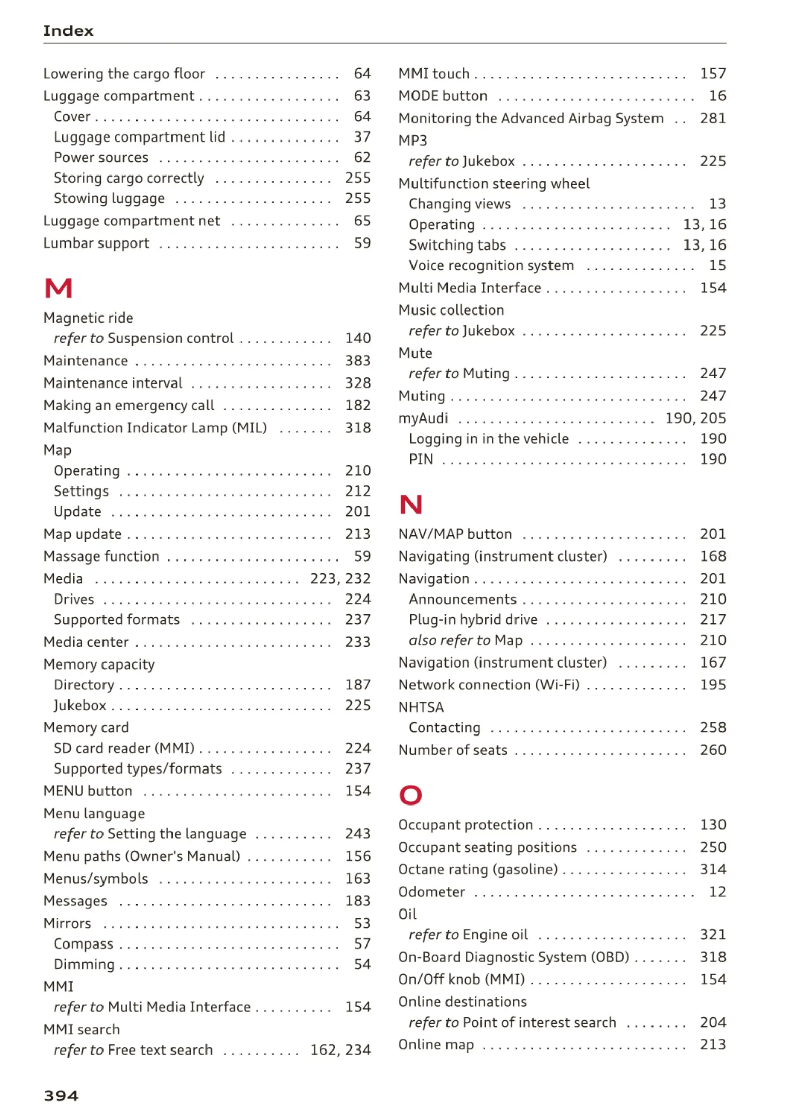 Menu paths (Owner's Manual) . . . . . . . . . . . 156