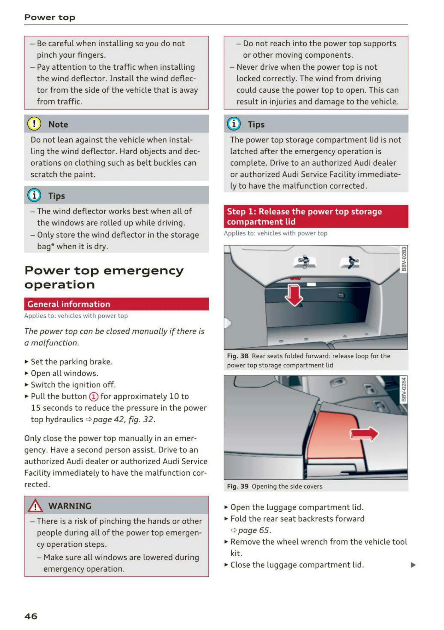 Only close the power top manua lly in an emer-