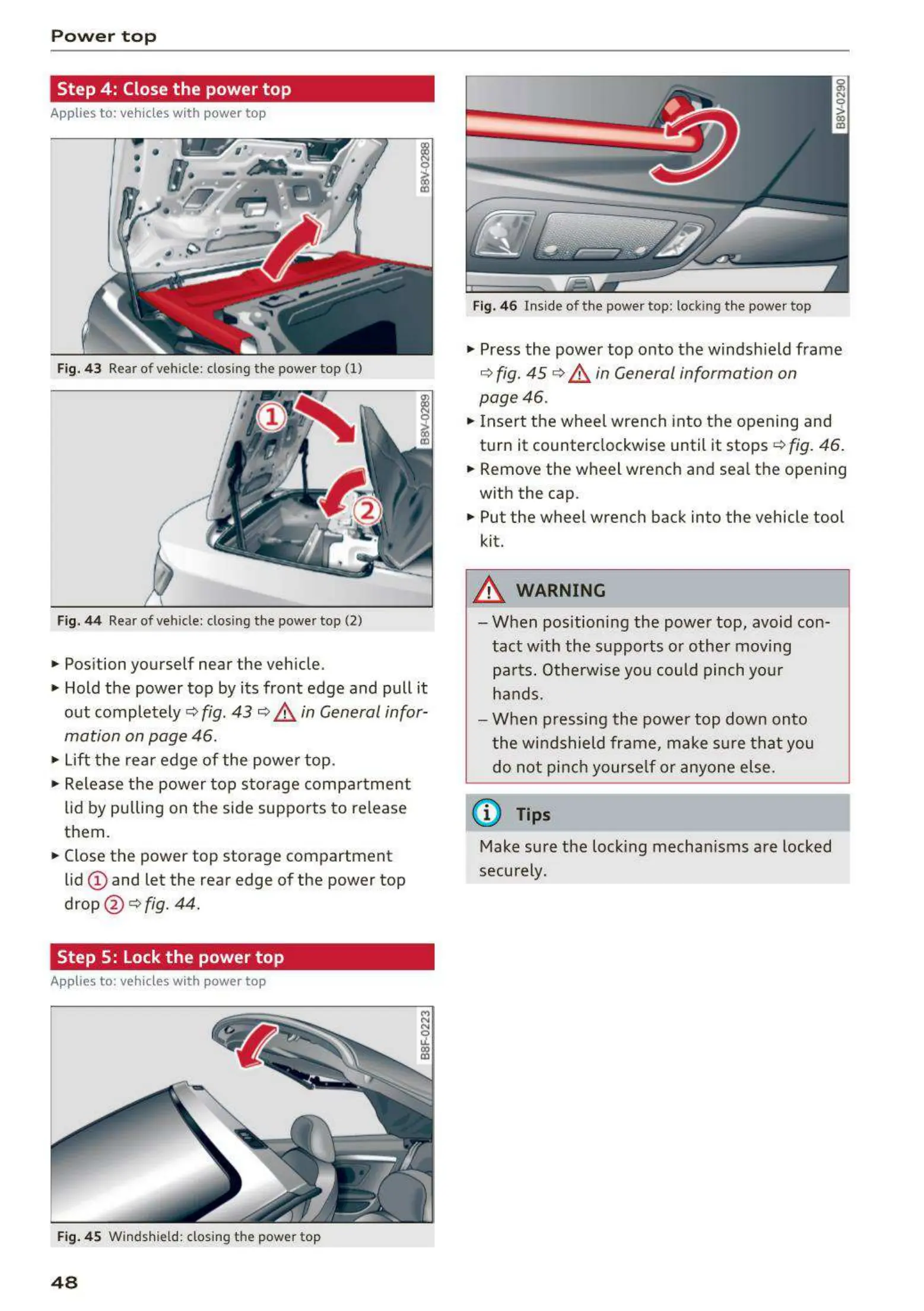 Fig. 45 Windshield: closing the powe r top