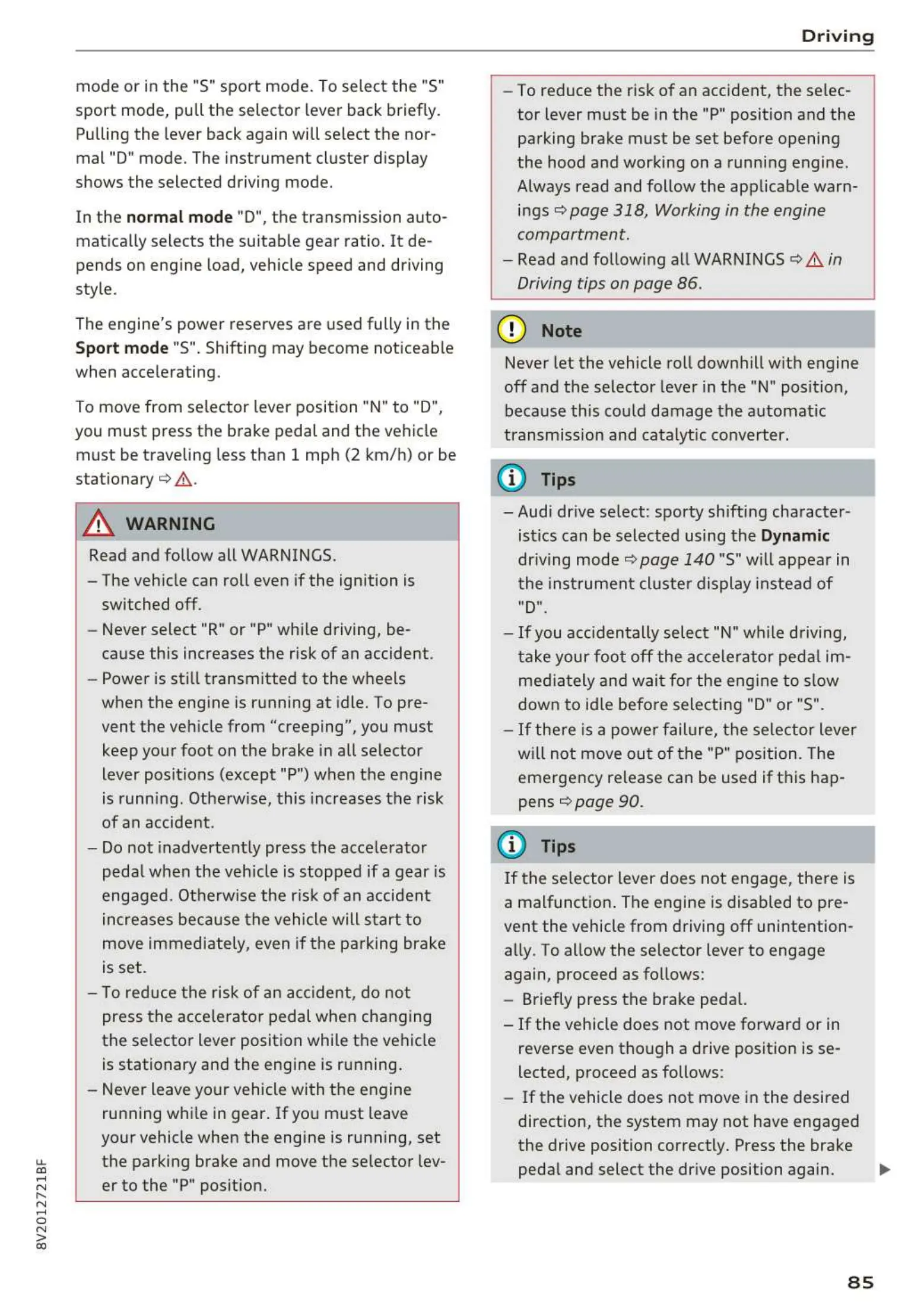 Driving tips on page 86 .