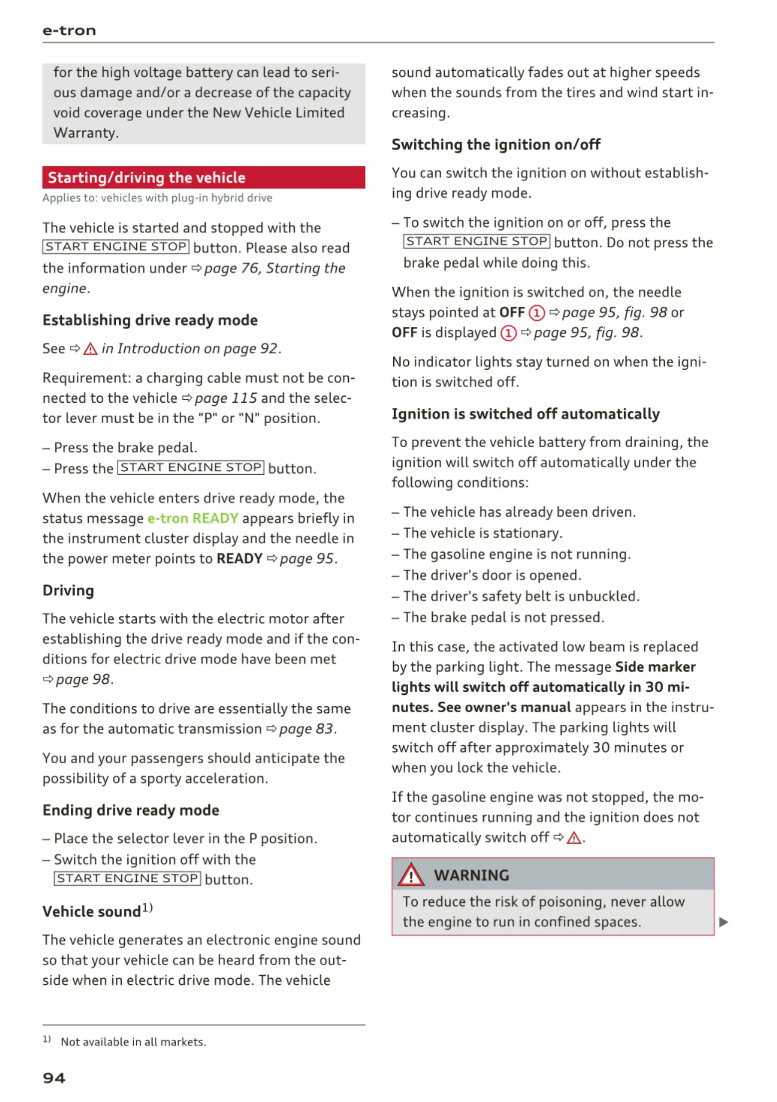 ignition will switch off automatically under the