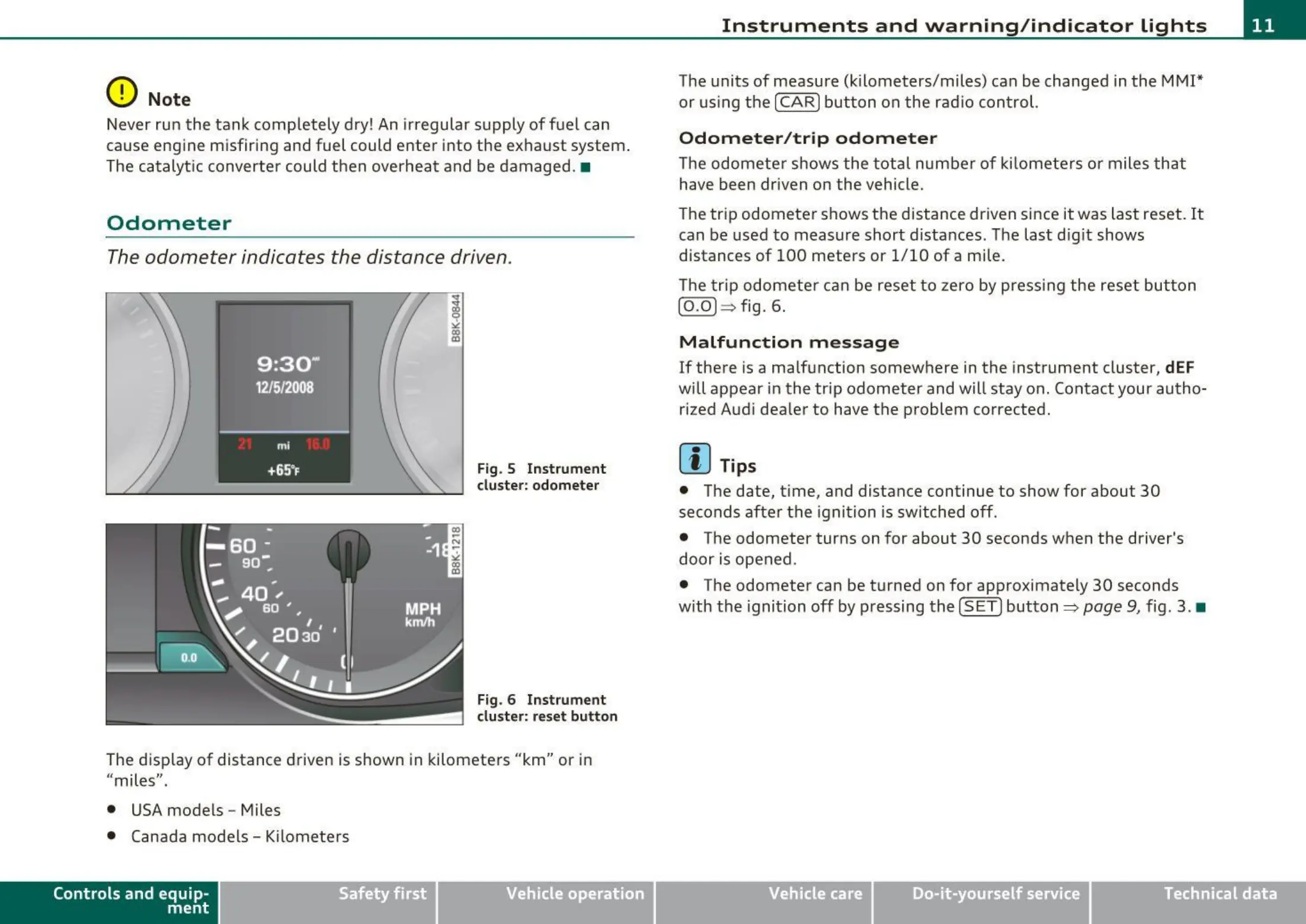 The tr ip odomete r shows the distance dr iven since it was last reset.