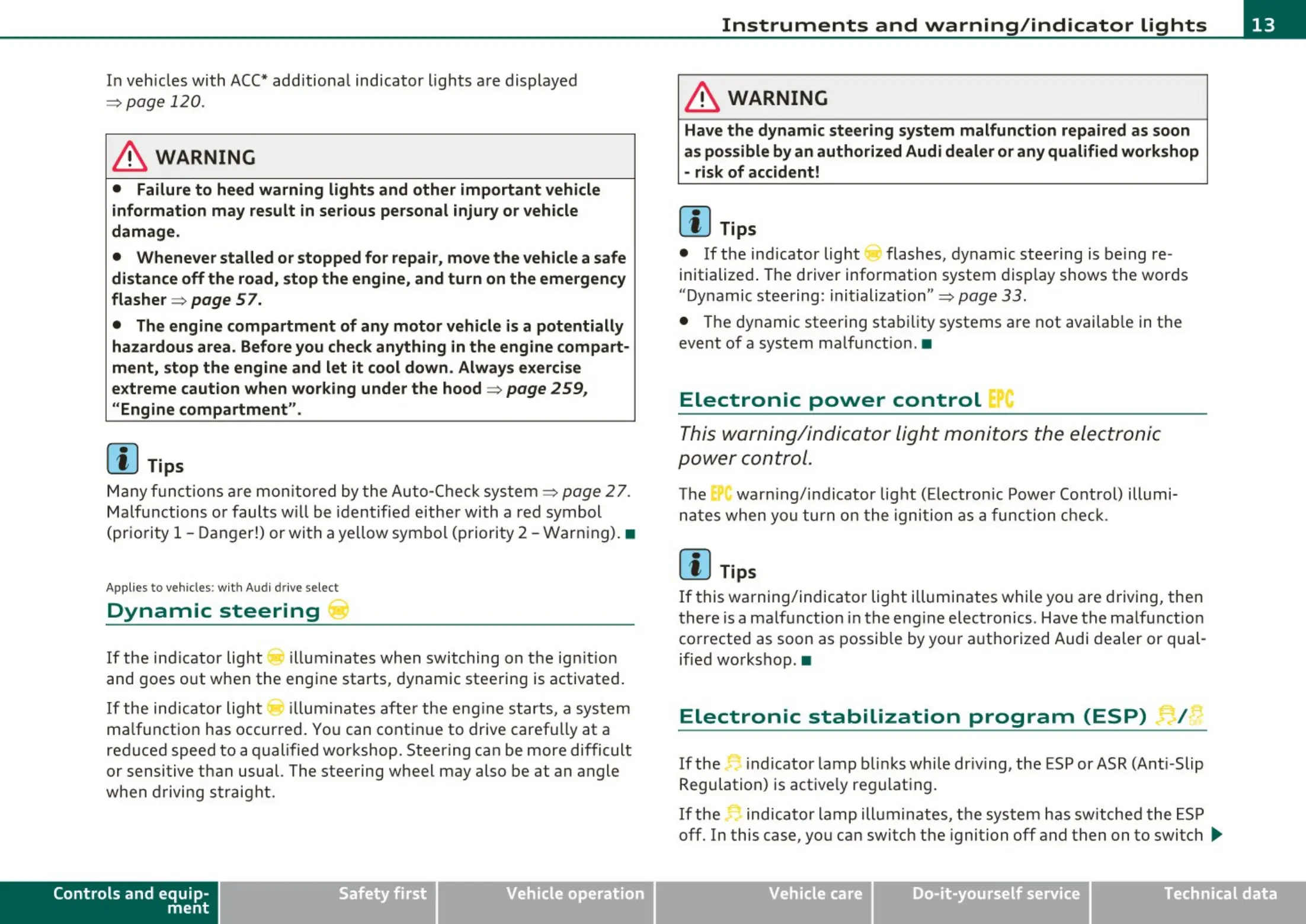 and goes out when the eng ine starts, dynamic steering is activate d.