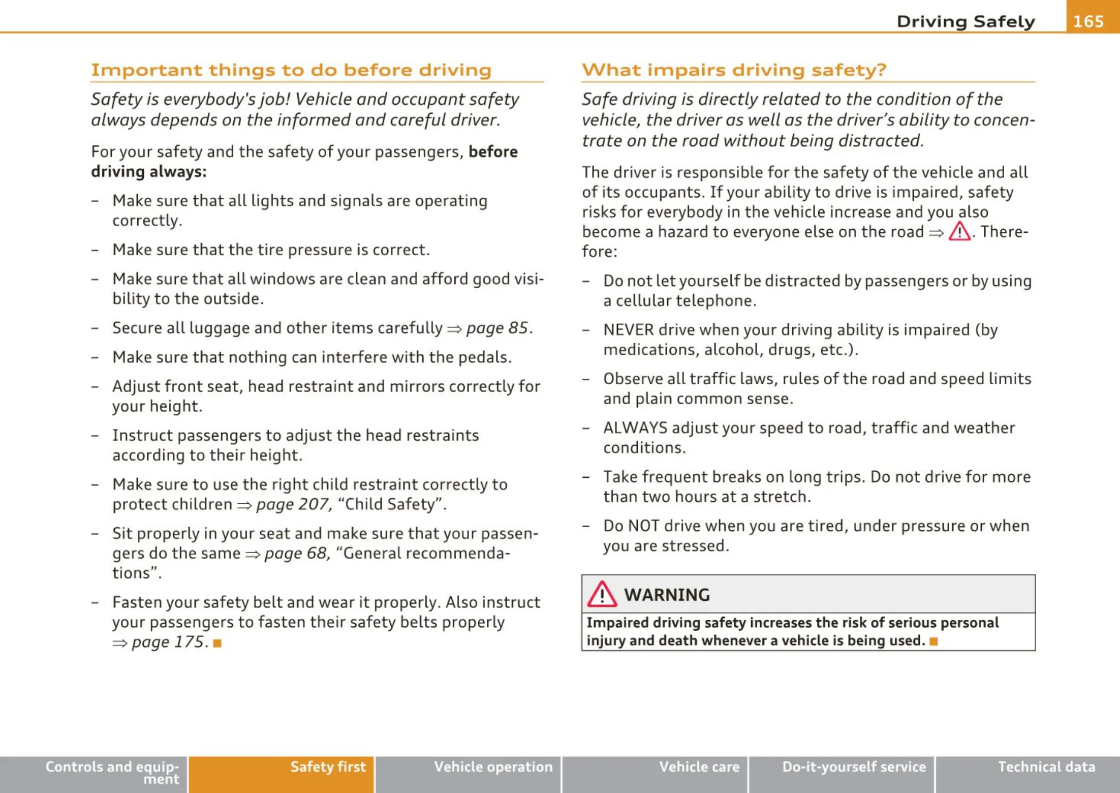 of its occupants. If your ability to drive is impaired, safety
