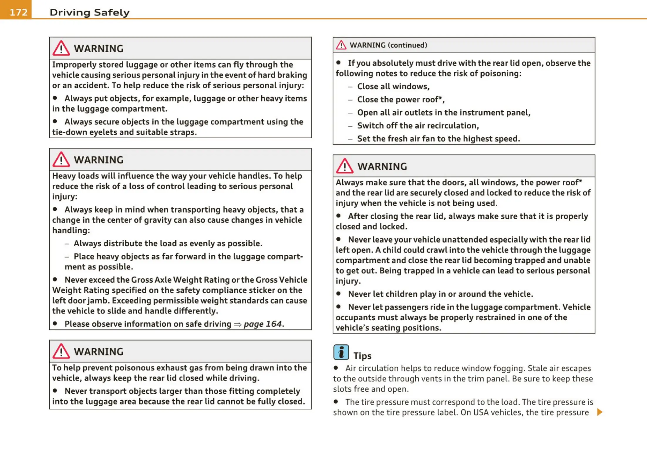 vehicle, always keep the rear lid closed while driving.