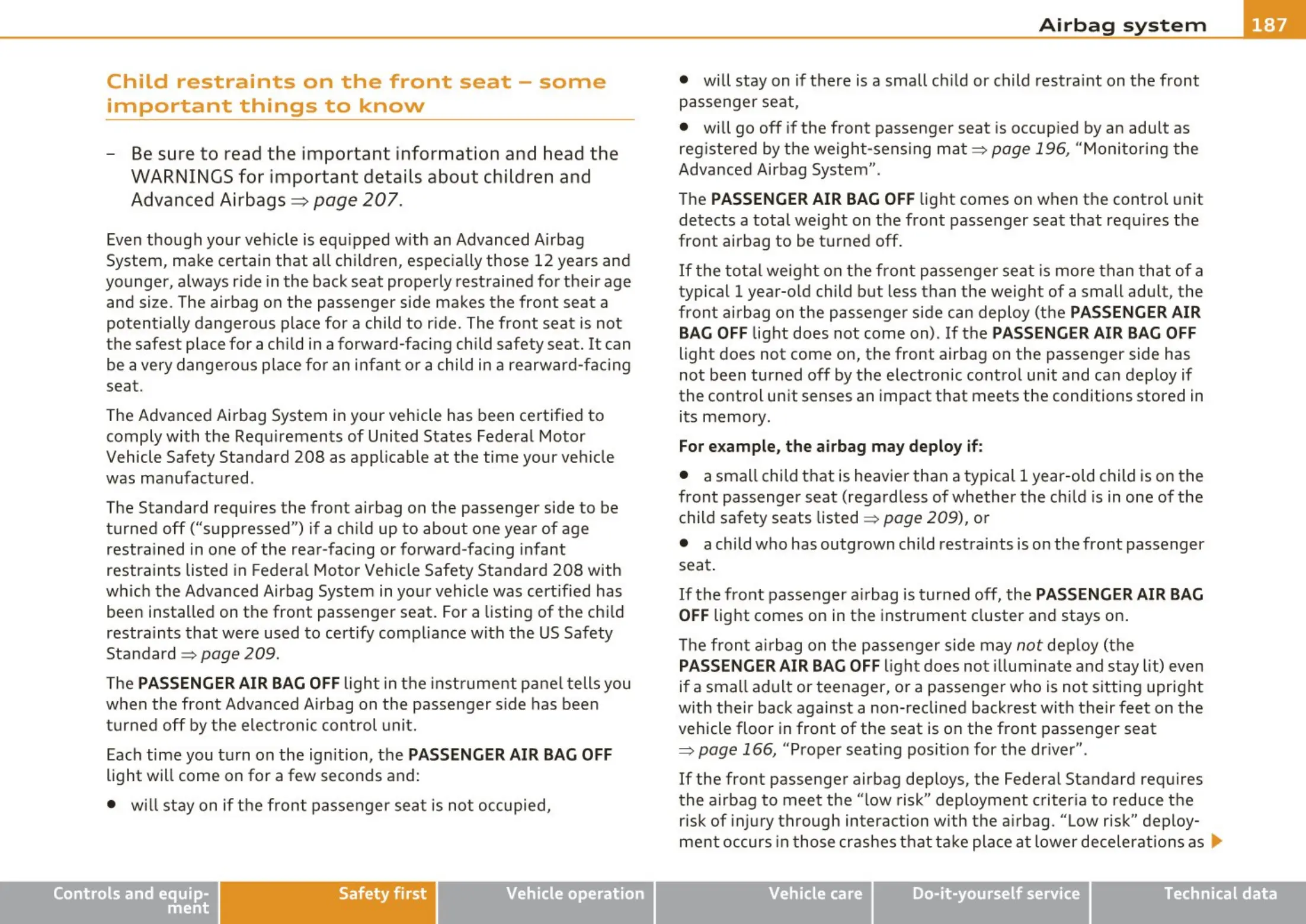 Vehicle Safety Standard 208 as applicable at the time your vehicle