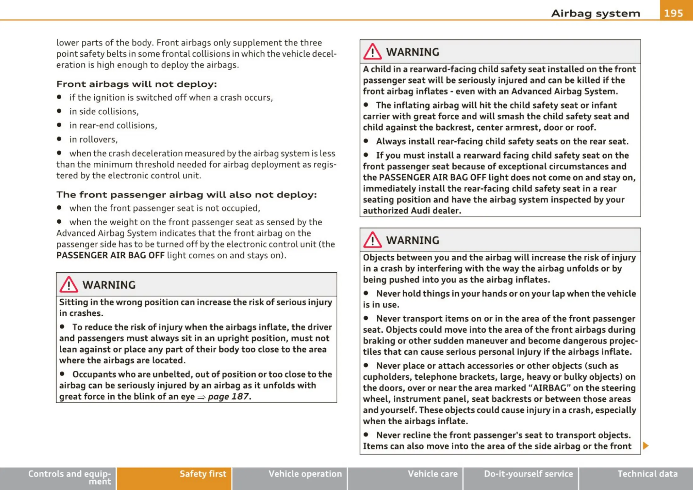 lowe r part s of the body . Front a irbags only supp lemen t th e three