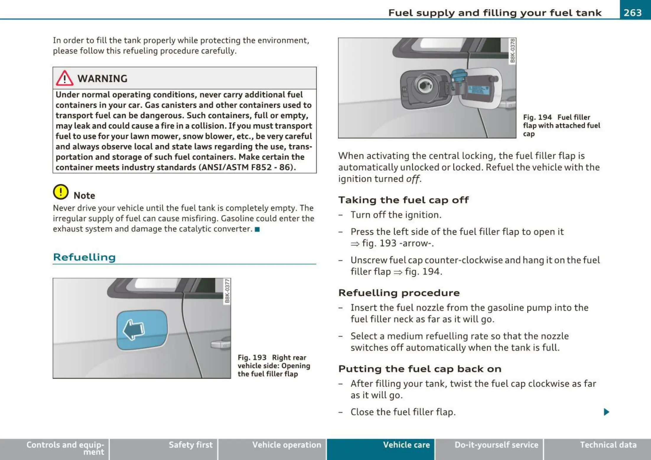 - Unscr ew fuel cap counter-clockwise and hang it on the fuel