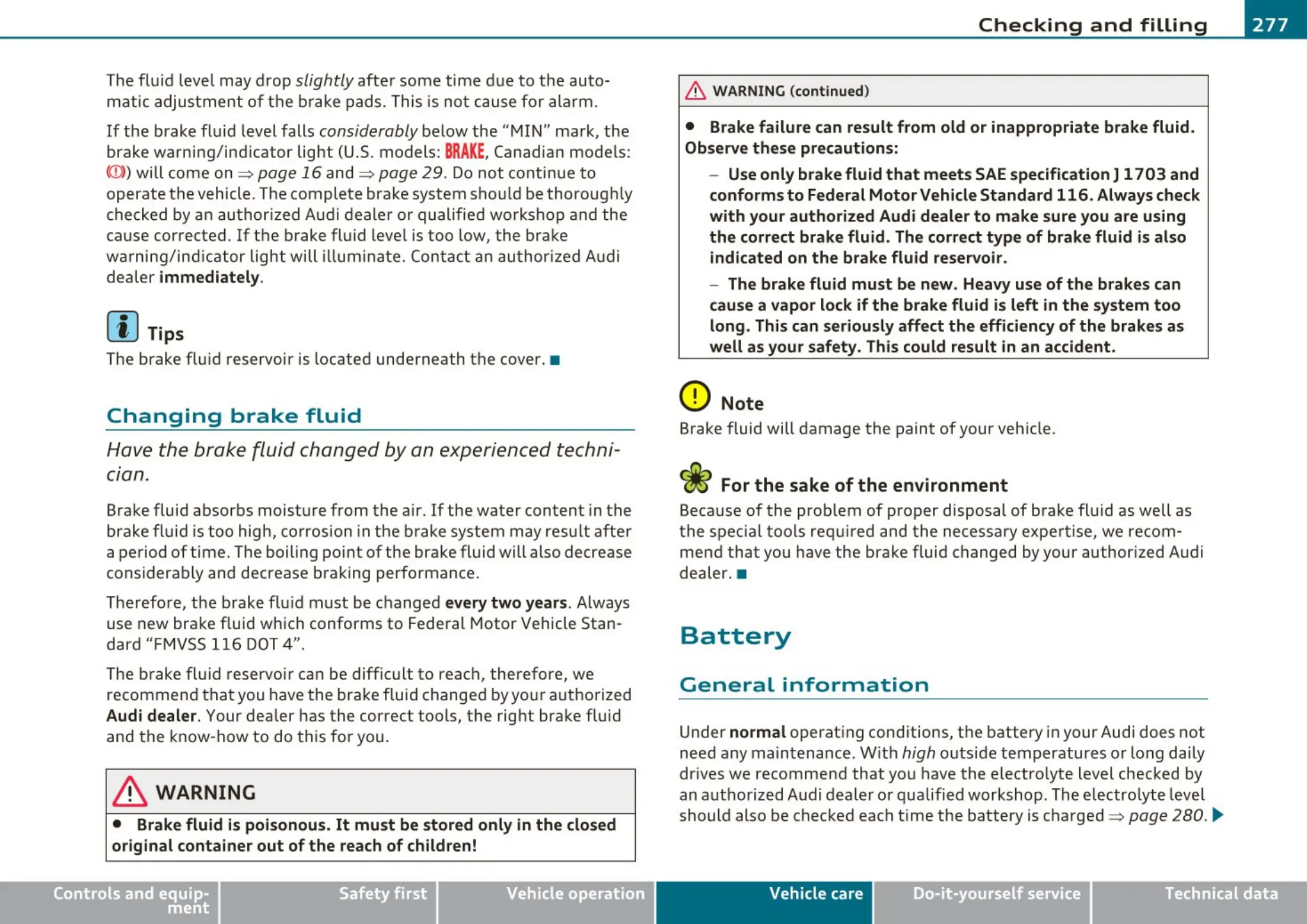 should also be checked each t ime the battery is charged => page 280.