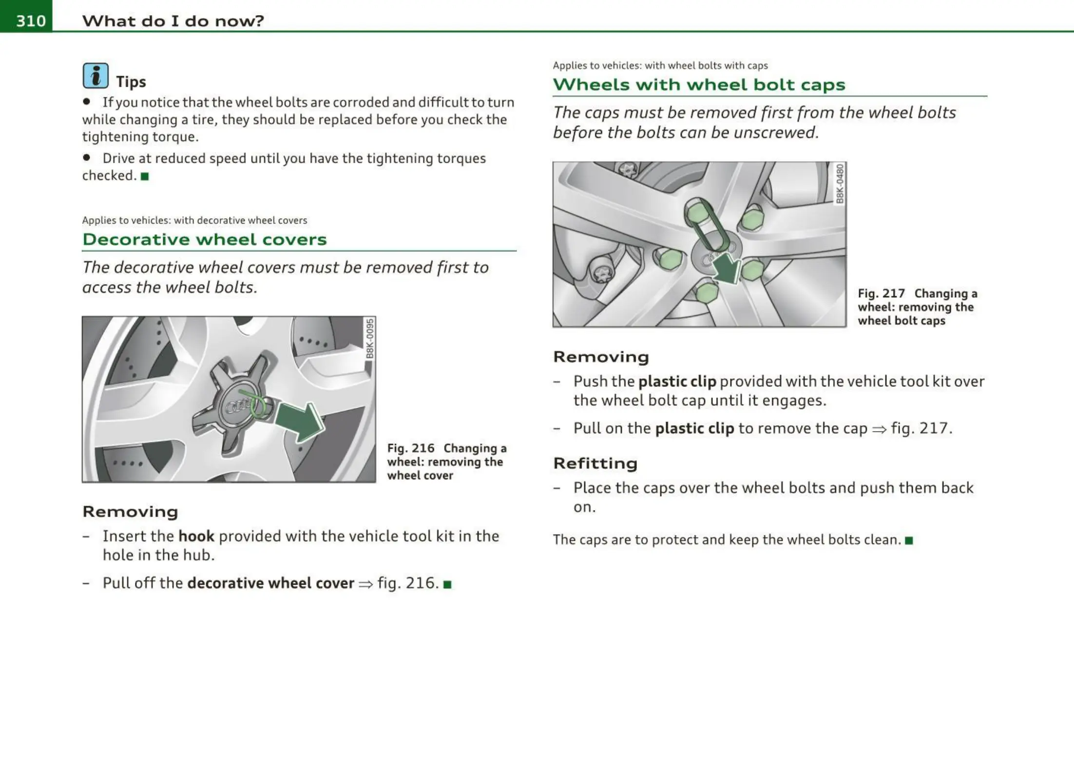 - Pull off the decorative wheel cover =:> fig . 216. •