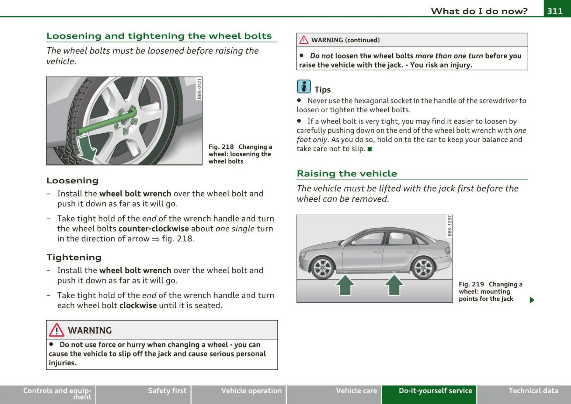 • If a wheel bolt is very tight, you may find it easier to loosen by