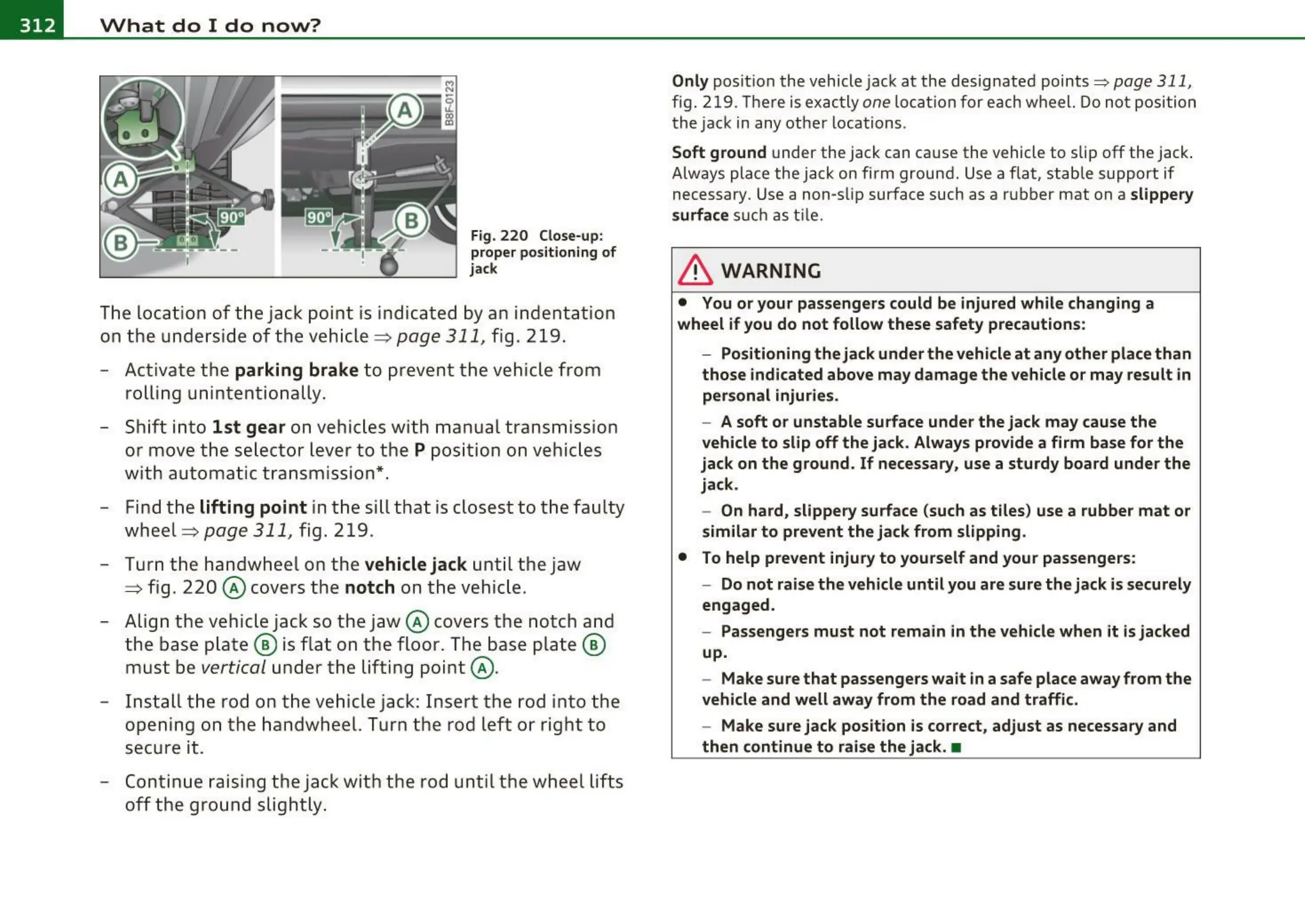 Only pos it ion the vehicle j ack at the desig nated points:::::, page 311,