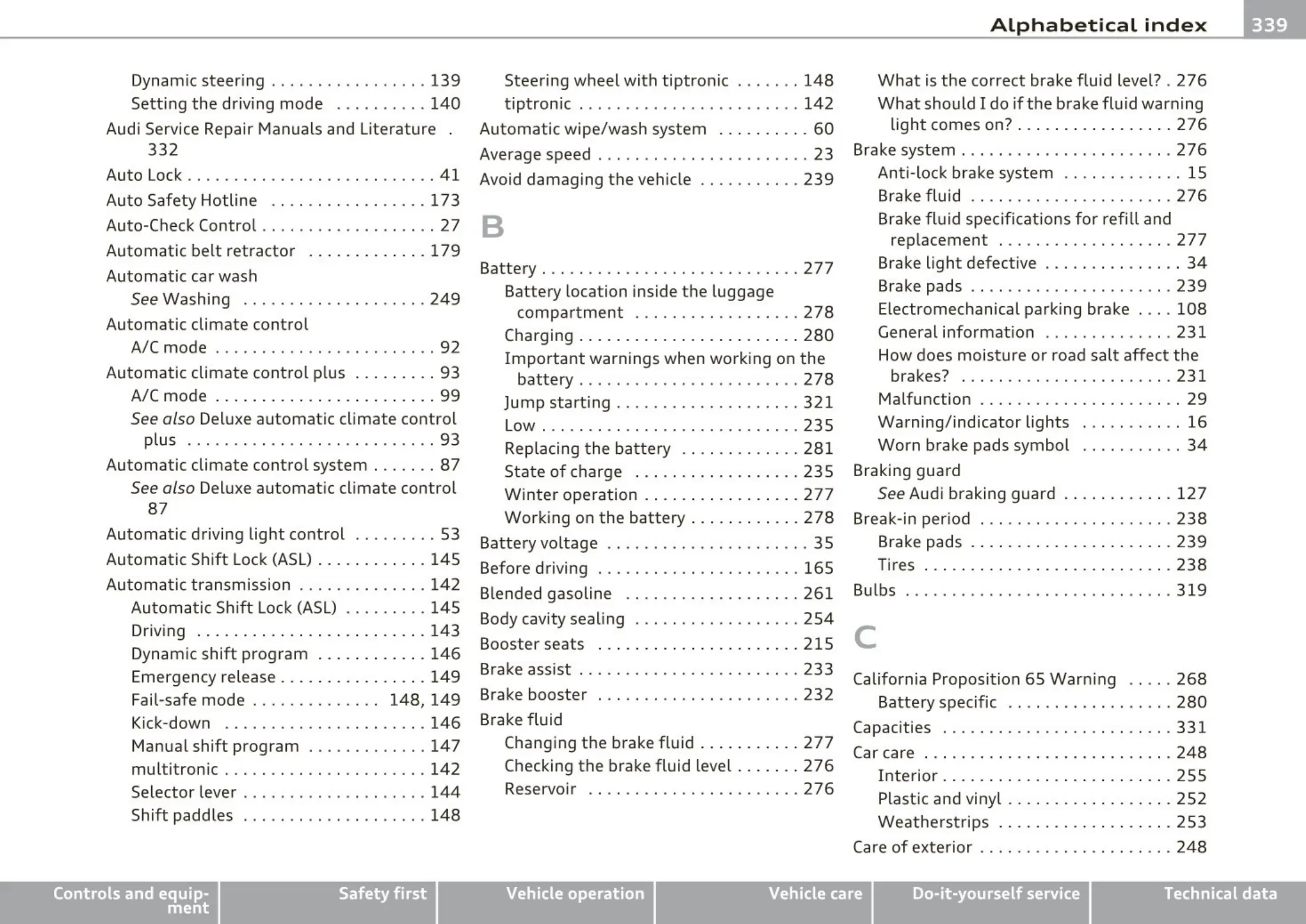 See Audi braking guard ............ 127