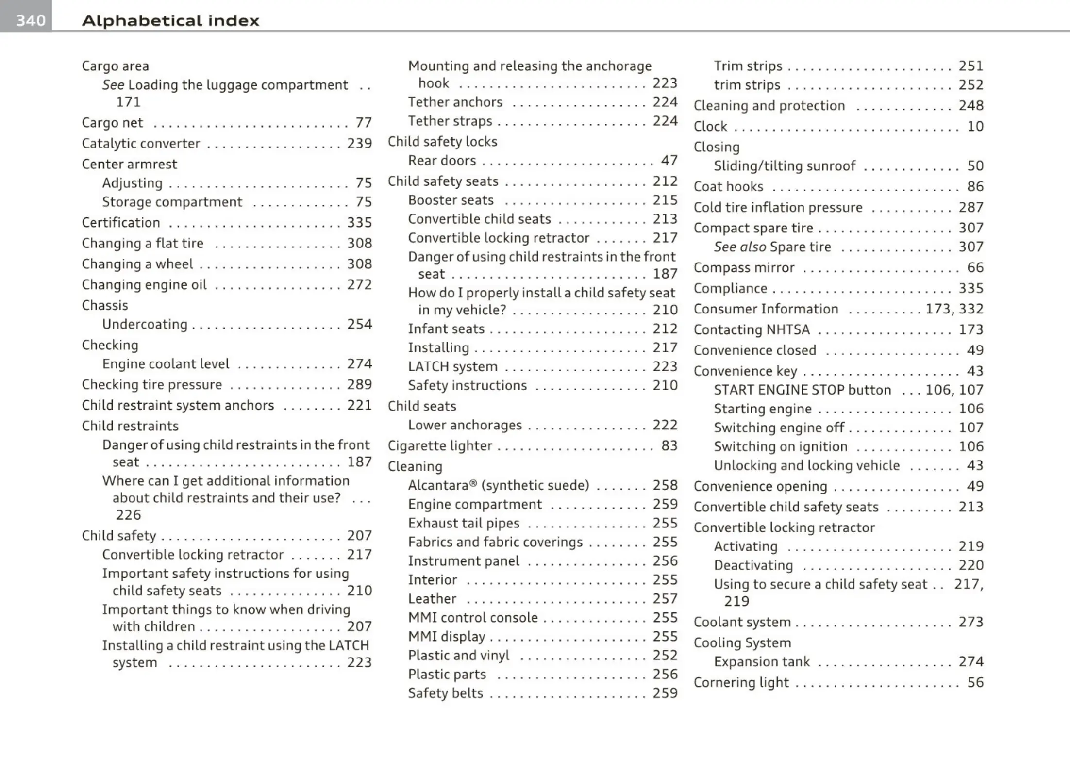 Alcantara ® (synthetic suede) . . . . . . . 258