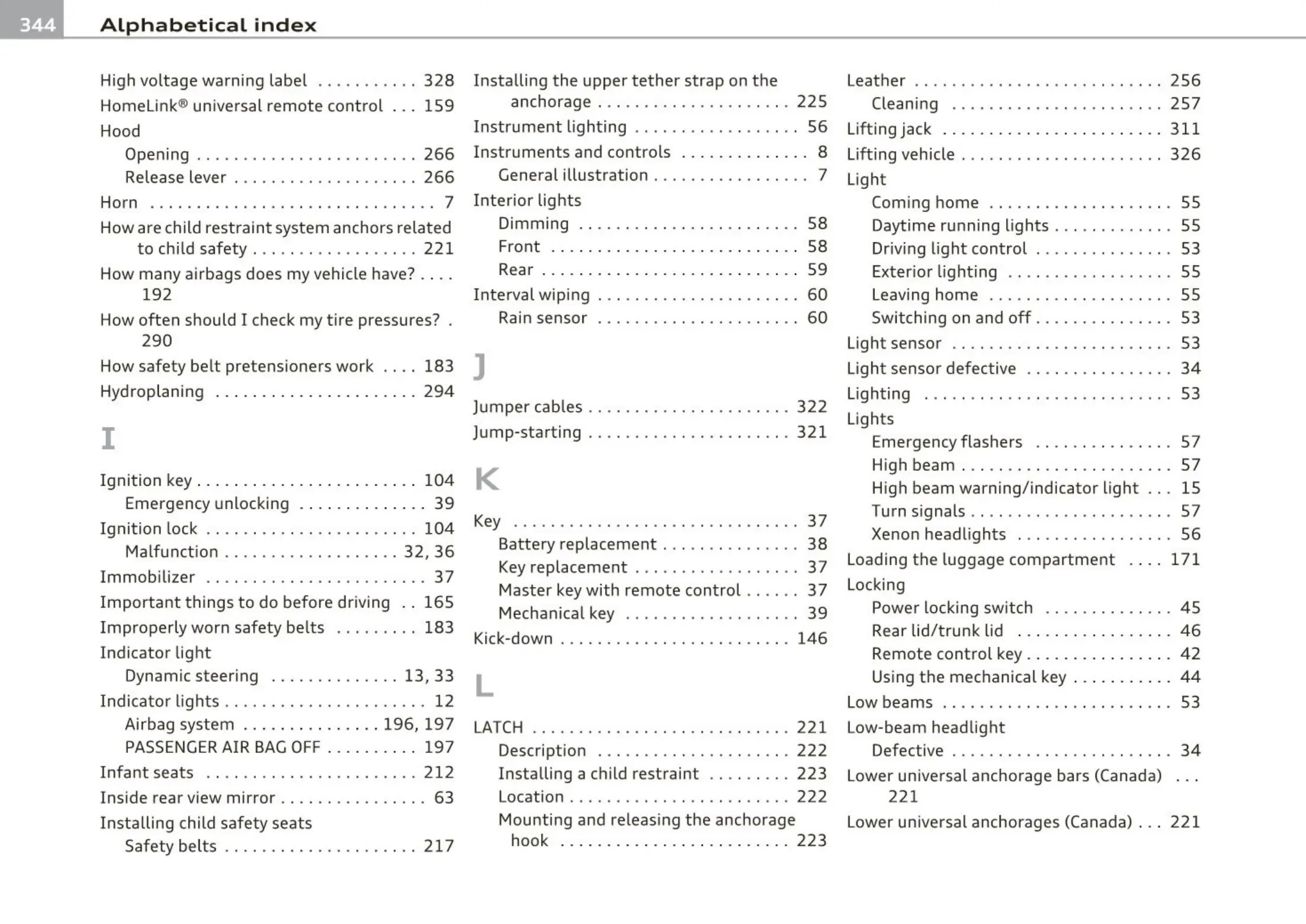 Xenon headlights . ... . . . .......... 56