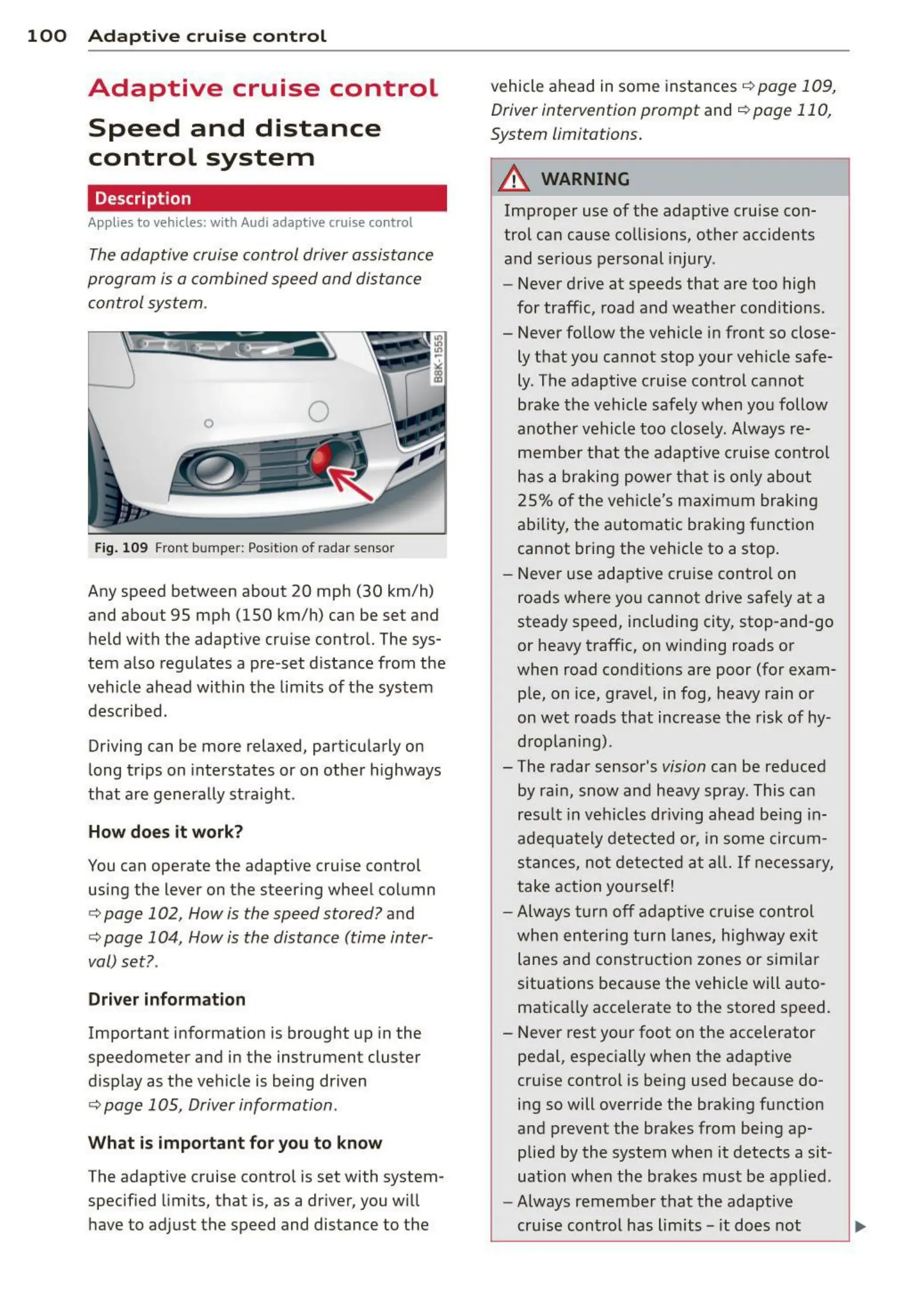Fig. 109 Front bumper: Posit ion of radar sensor