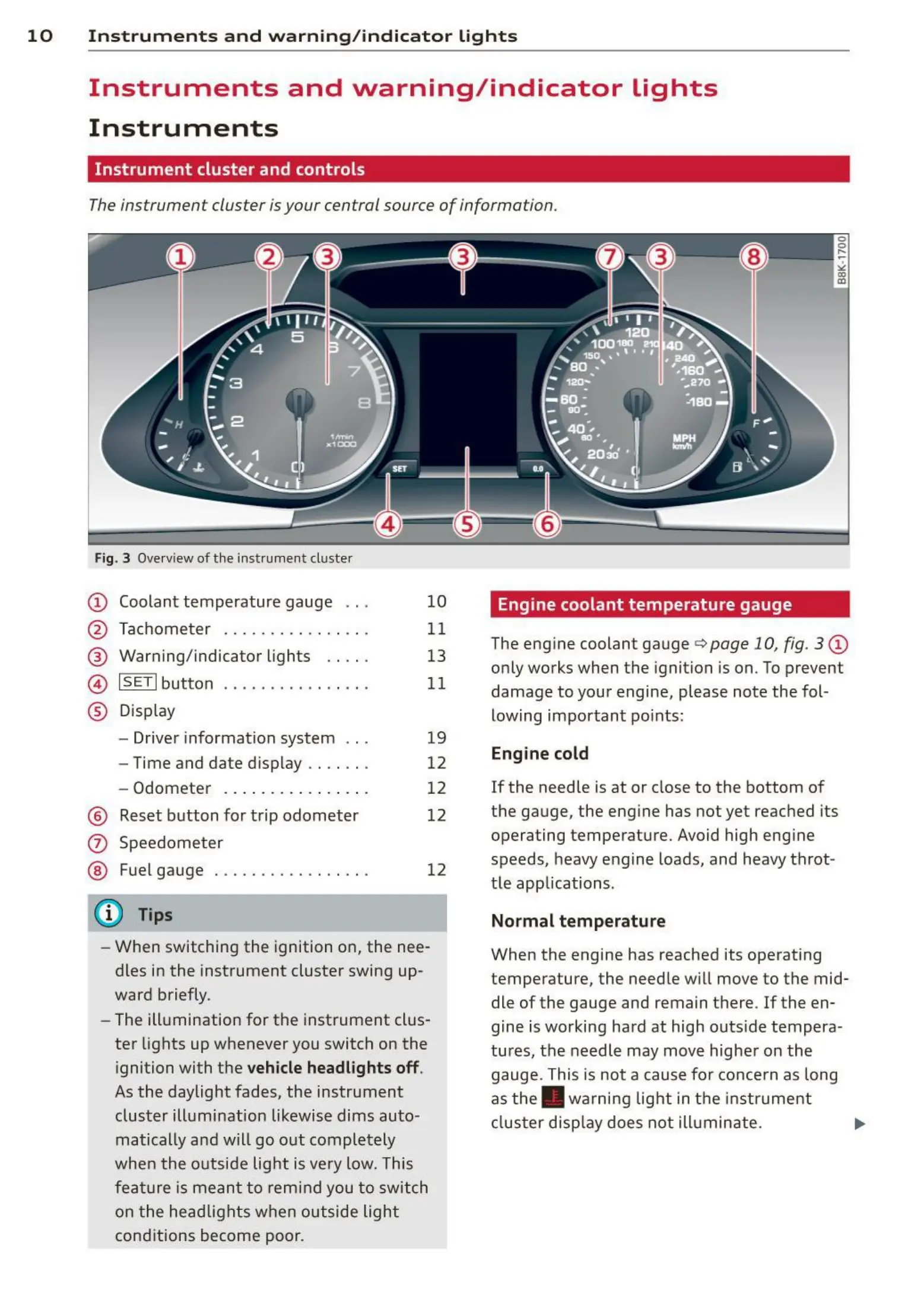 The engine coolant gauge q page 10, fig. 3 CD