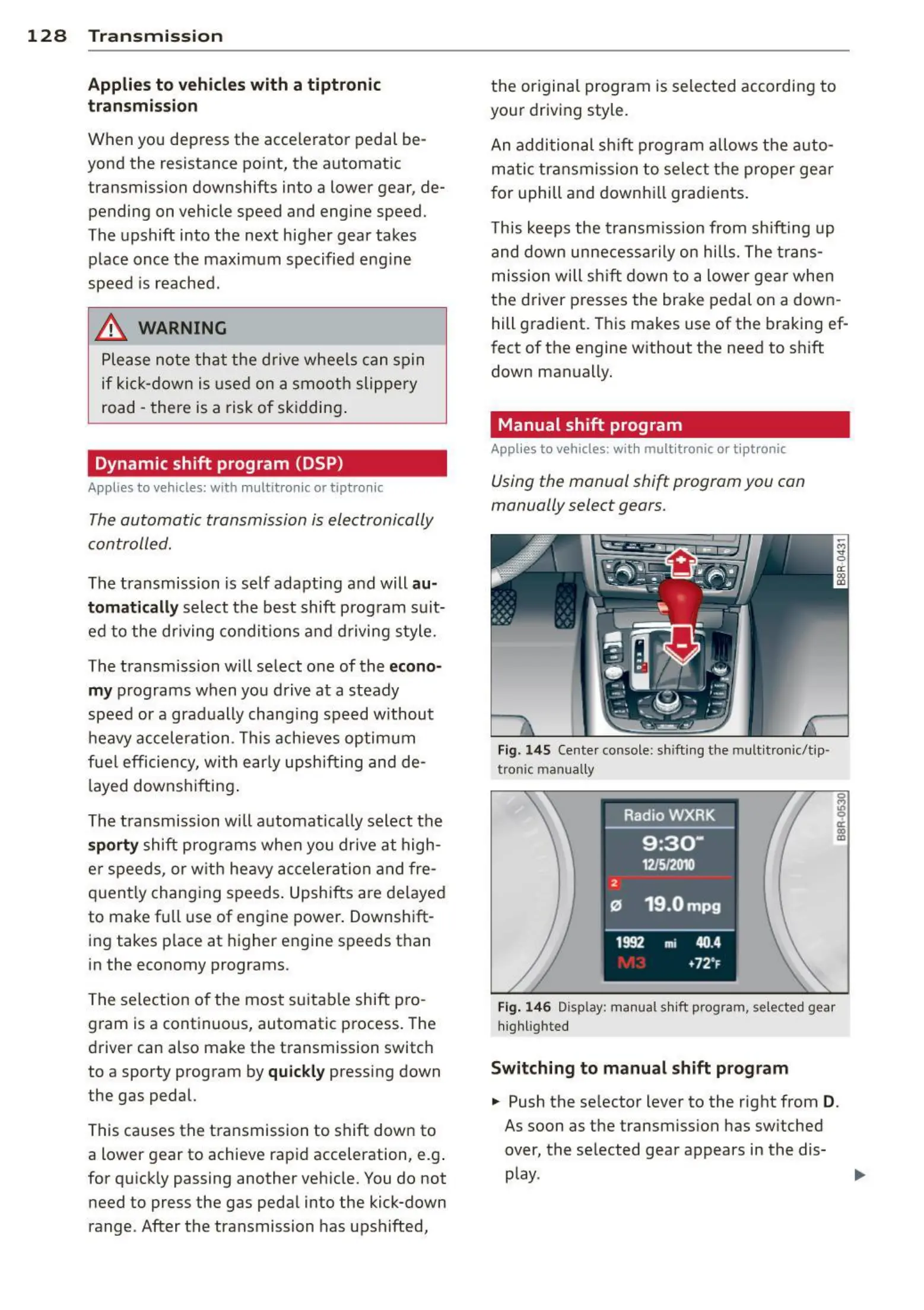 Fig. 146 Disp lay: manual sh ift program, se lected gear