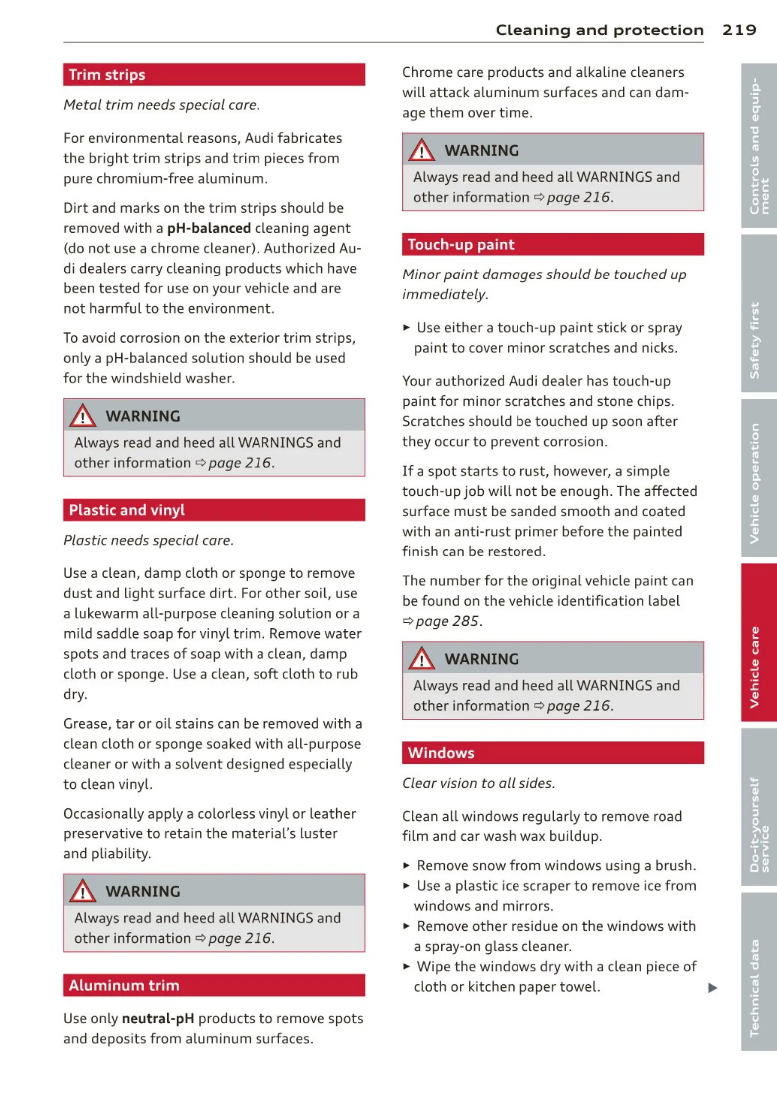 Cleaning a n d protec t ion 219