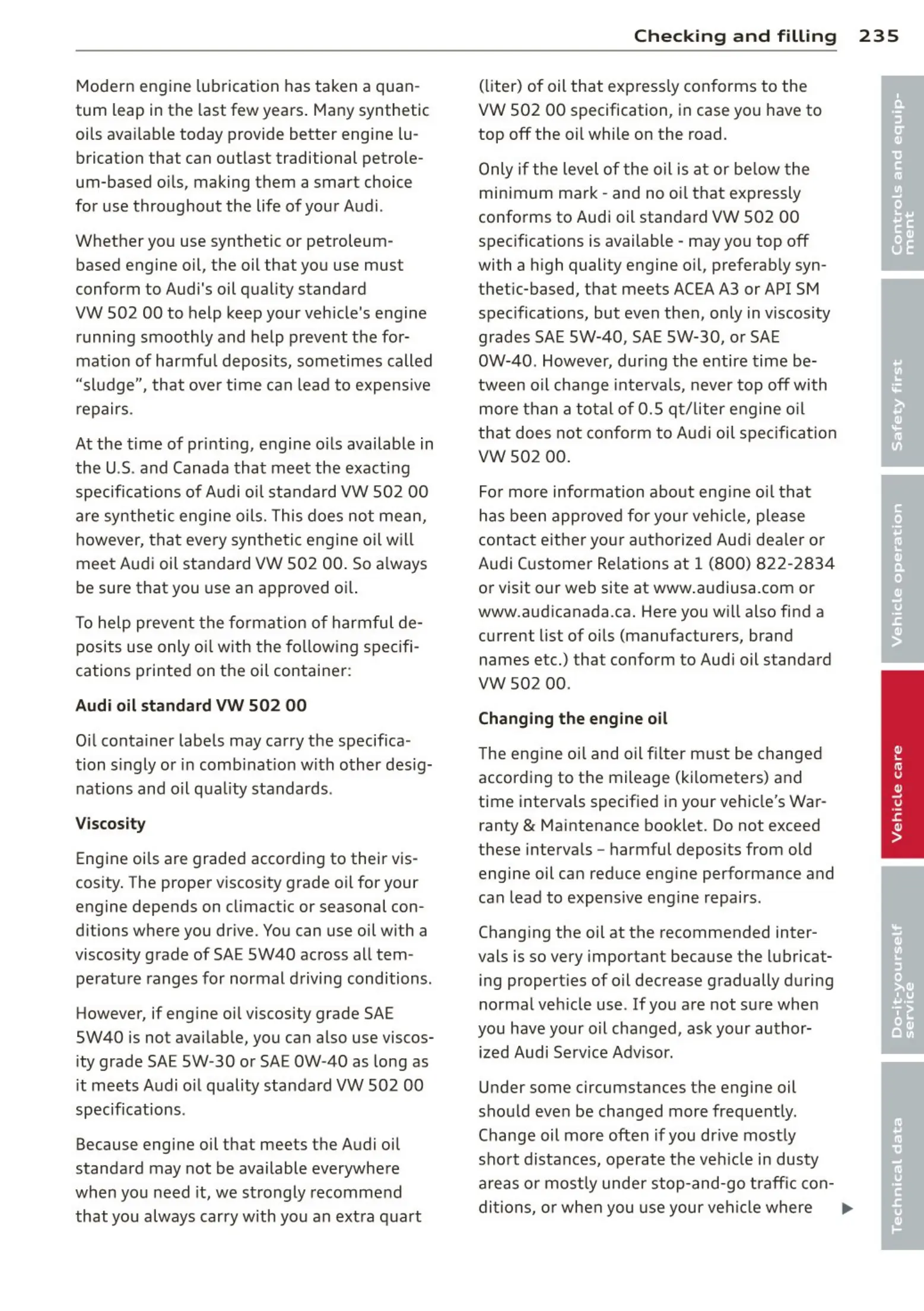 ity grade SAE 5W-30 or SAE OW-40 as long as