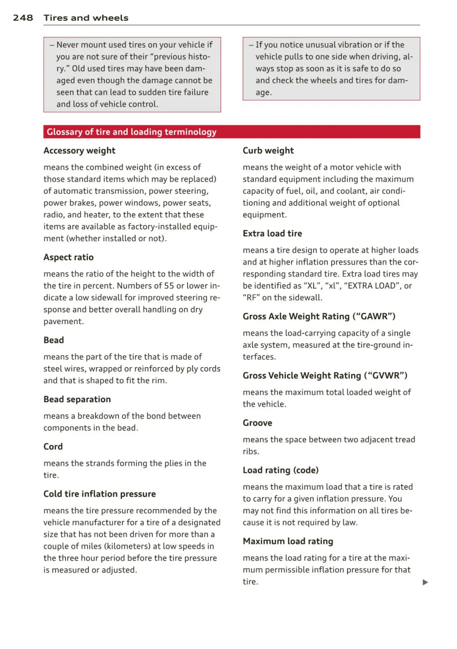 Glossary of tire and loading terminology