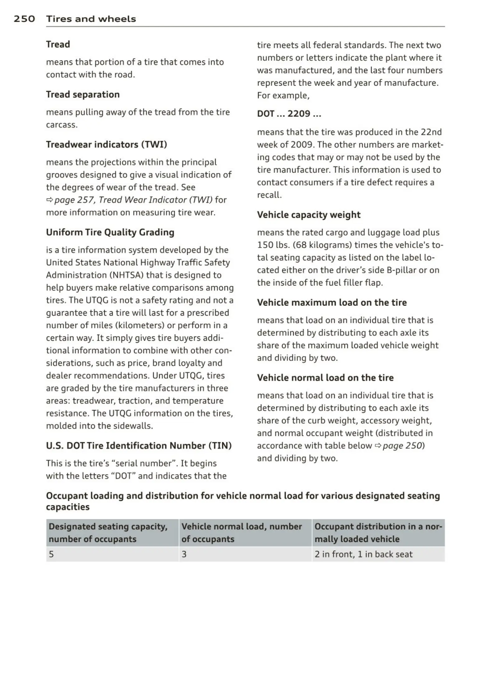 ¢ page 257, Tread Wear Indicator (TWI) for