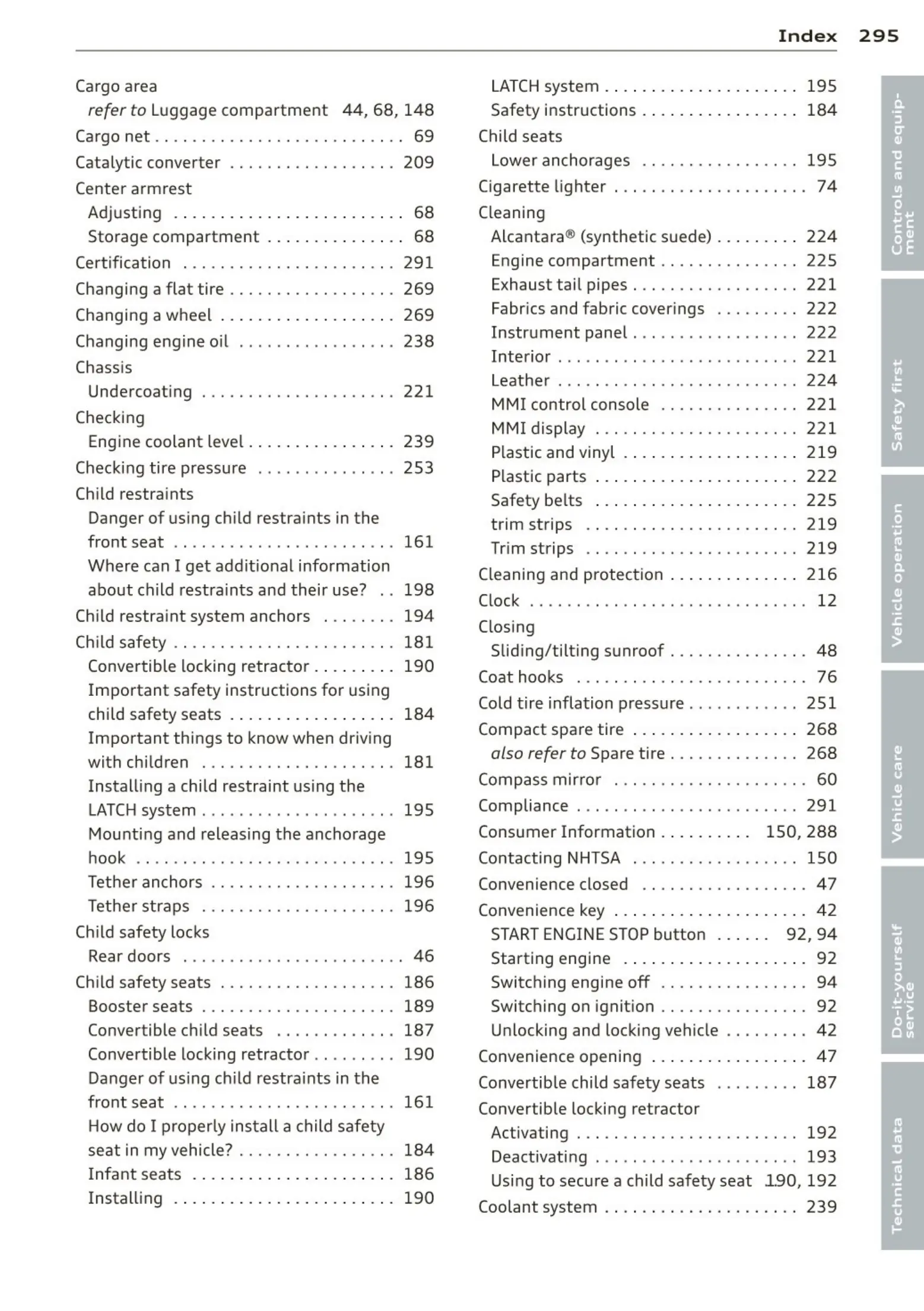 Child restra int system anchors . . . . . . . . 194