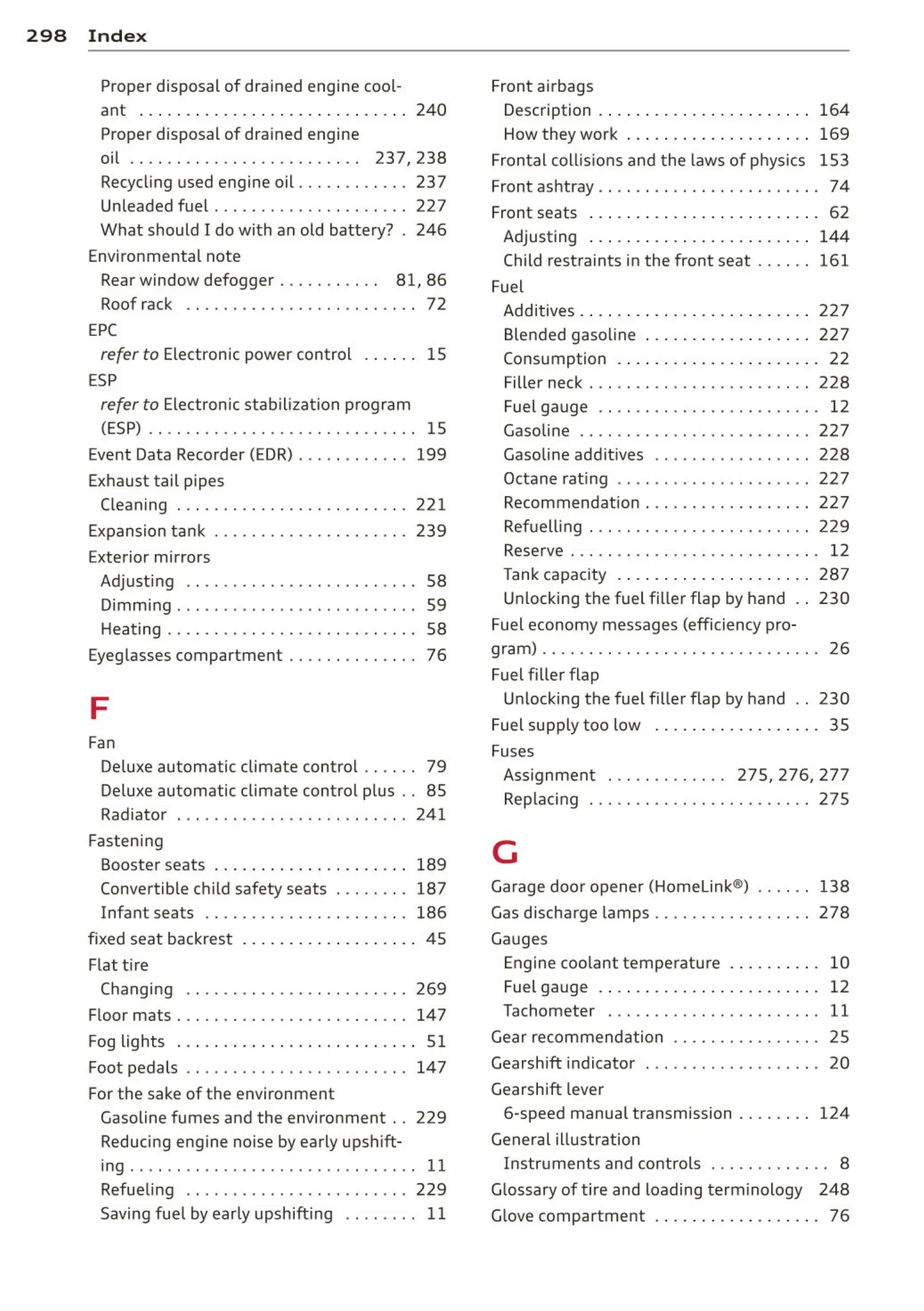 Unleaded fuel ............. . . . . . ... 227