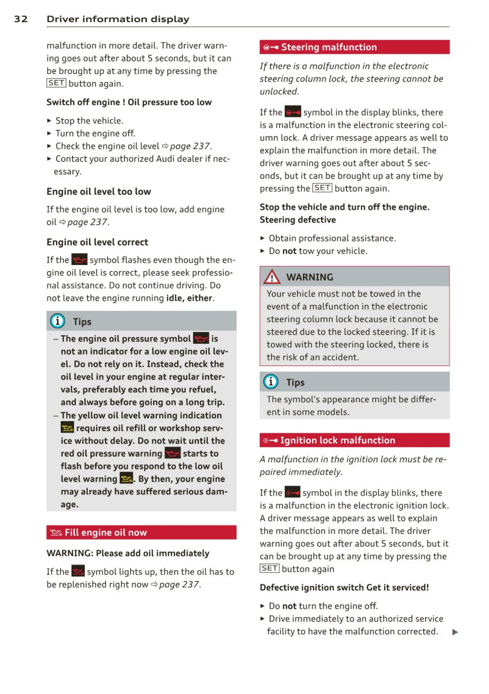 A malfunction in the ignition lock must be re-