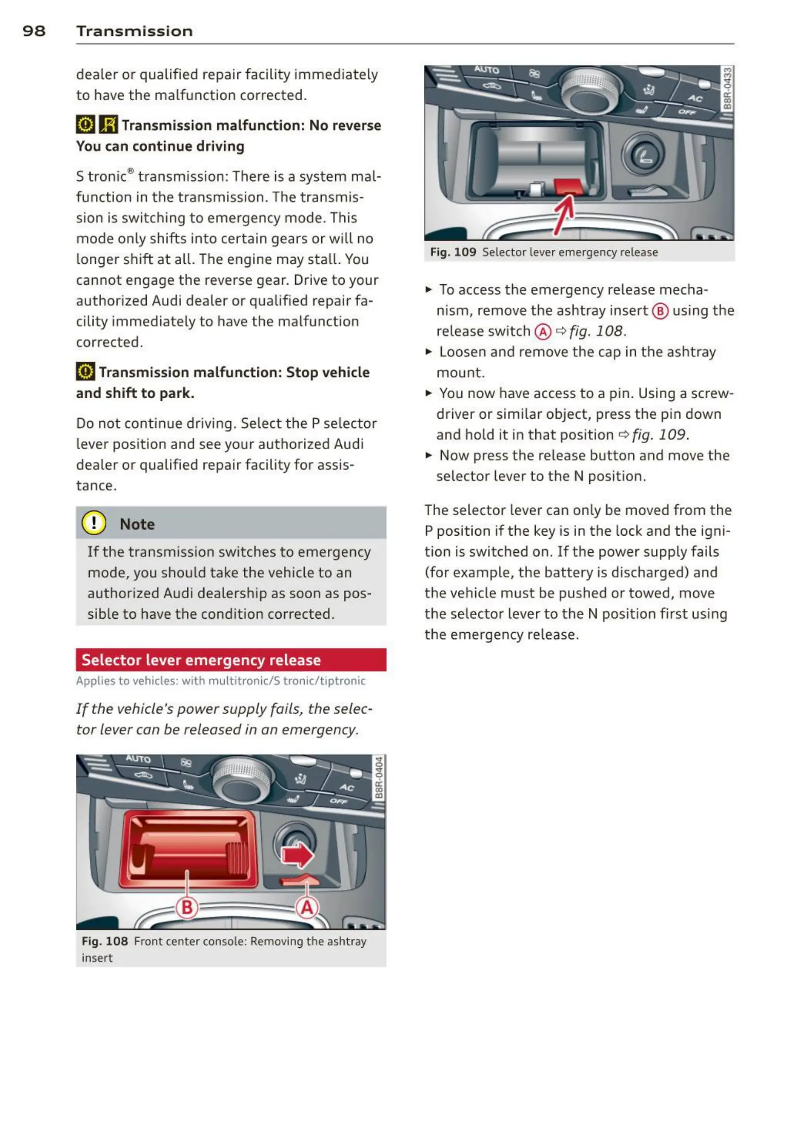 lever position and see your authorized Audi