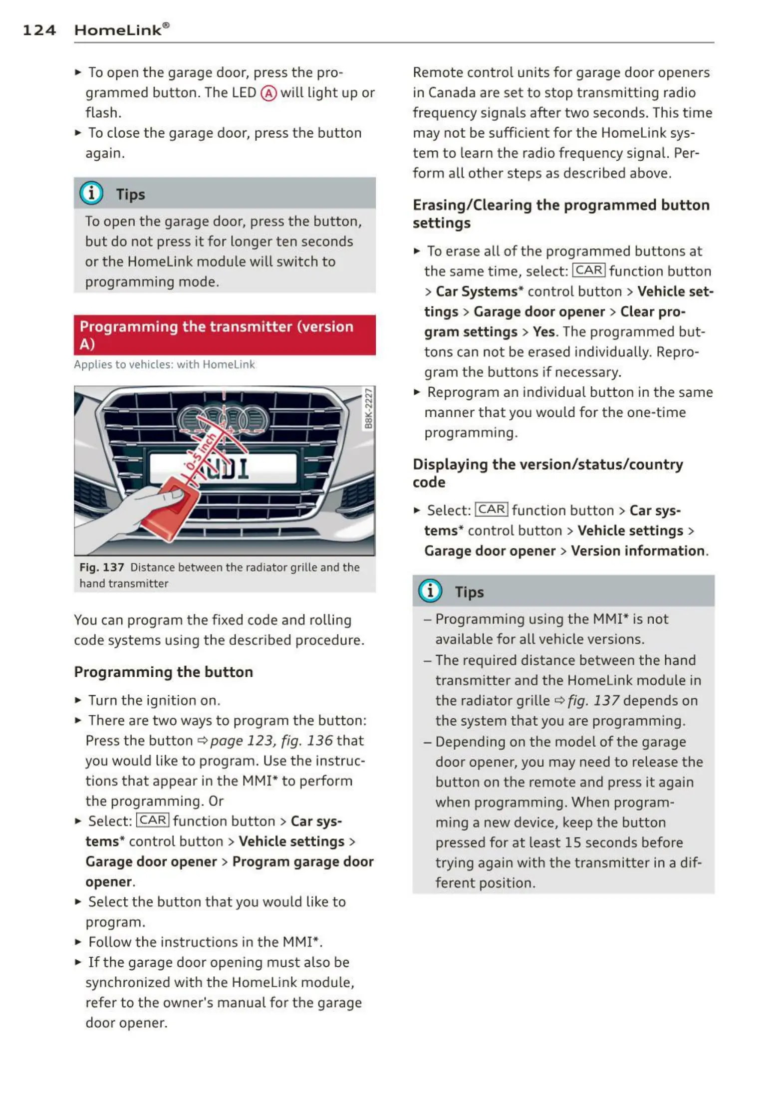 Applies to vehicles : with Home li nk
