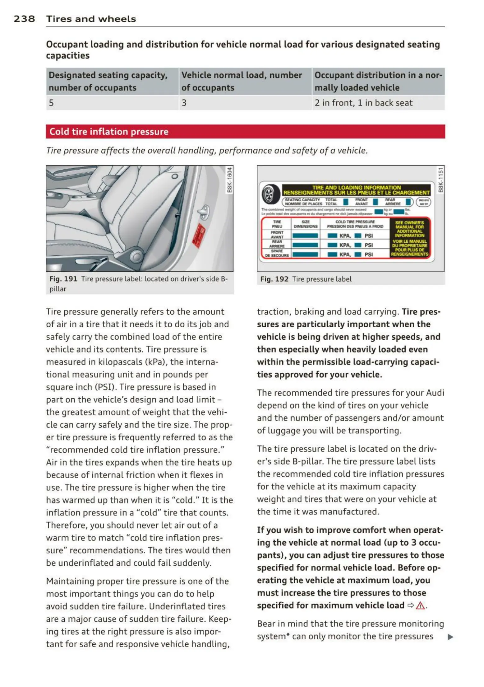 The recommended tire pressures f or your Audi