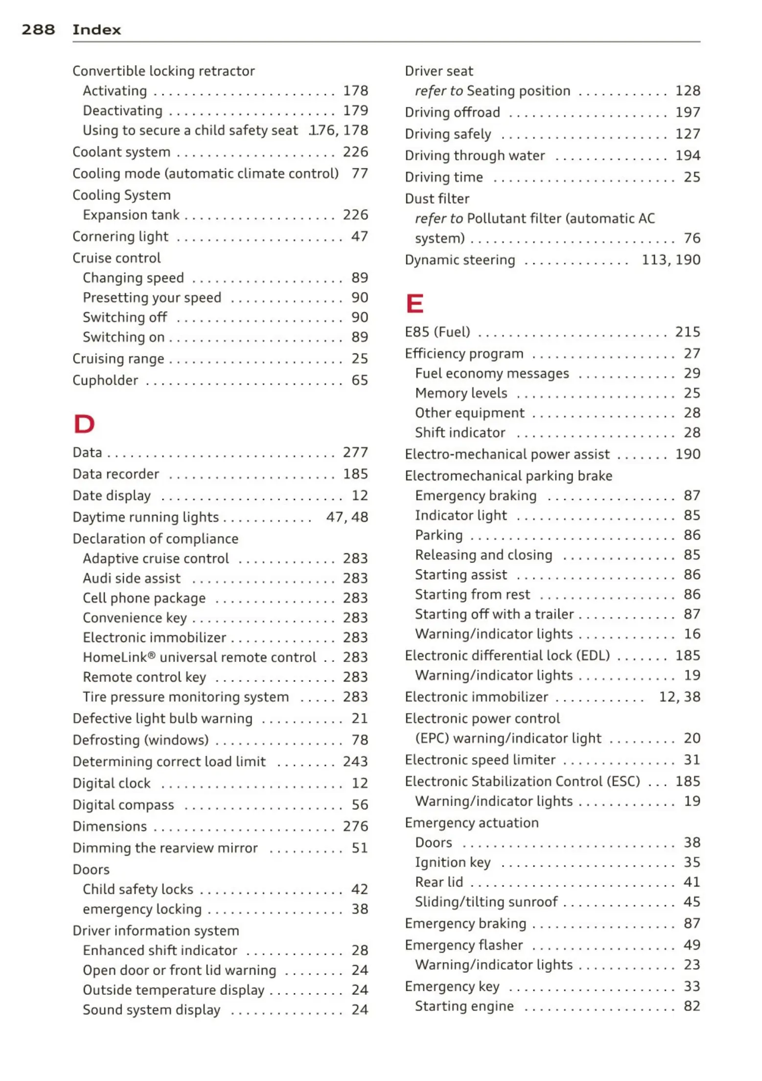 Adaptive cruise control ......... . ... 283