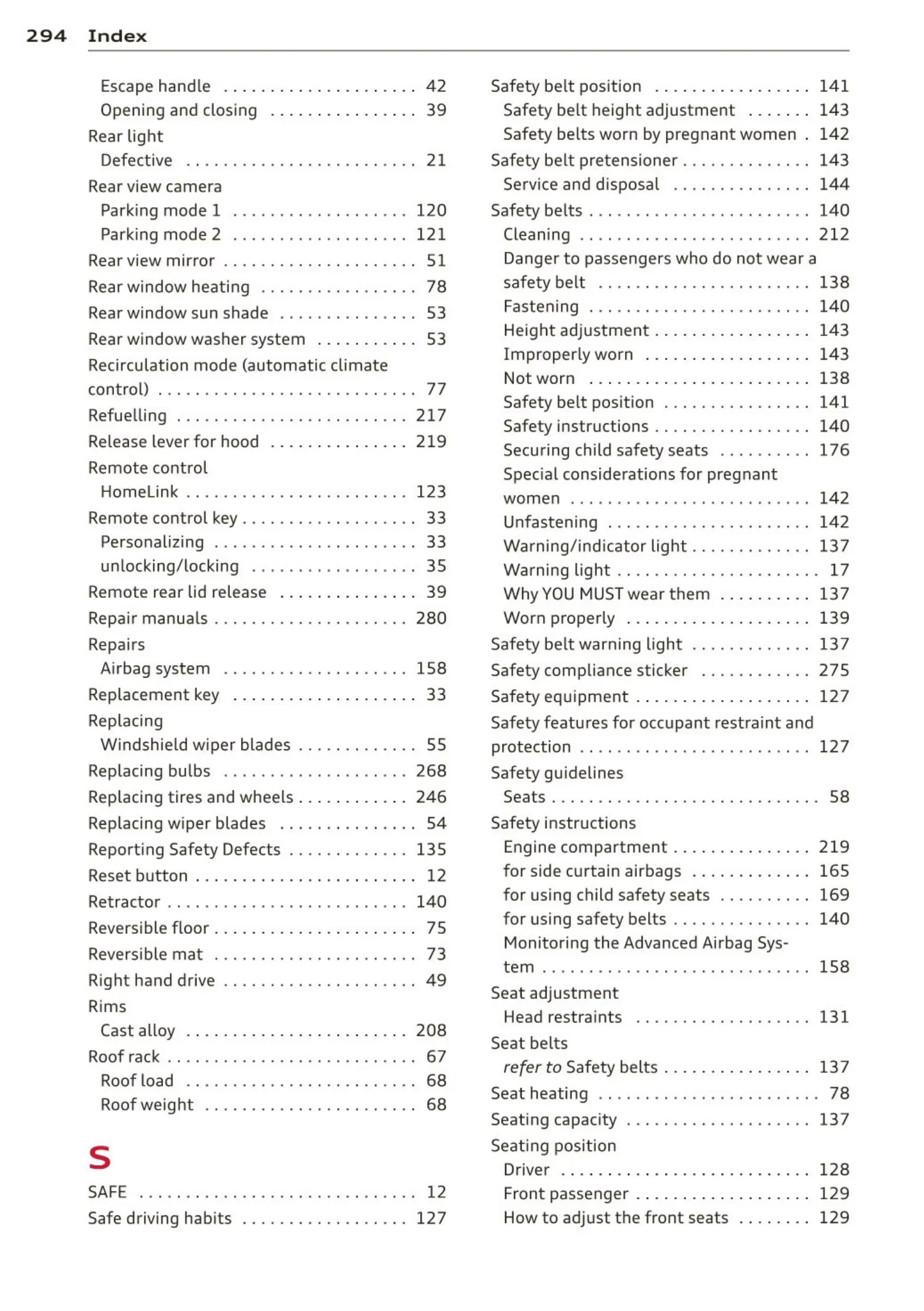 Safety belt height adjustment . . . . . . . 143