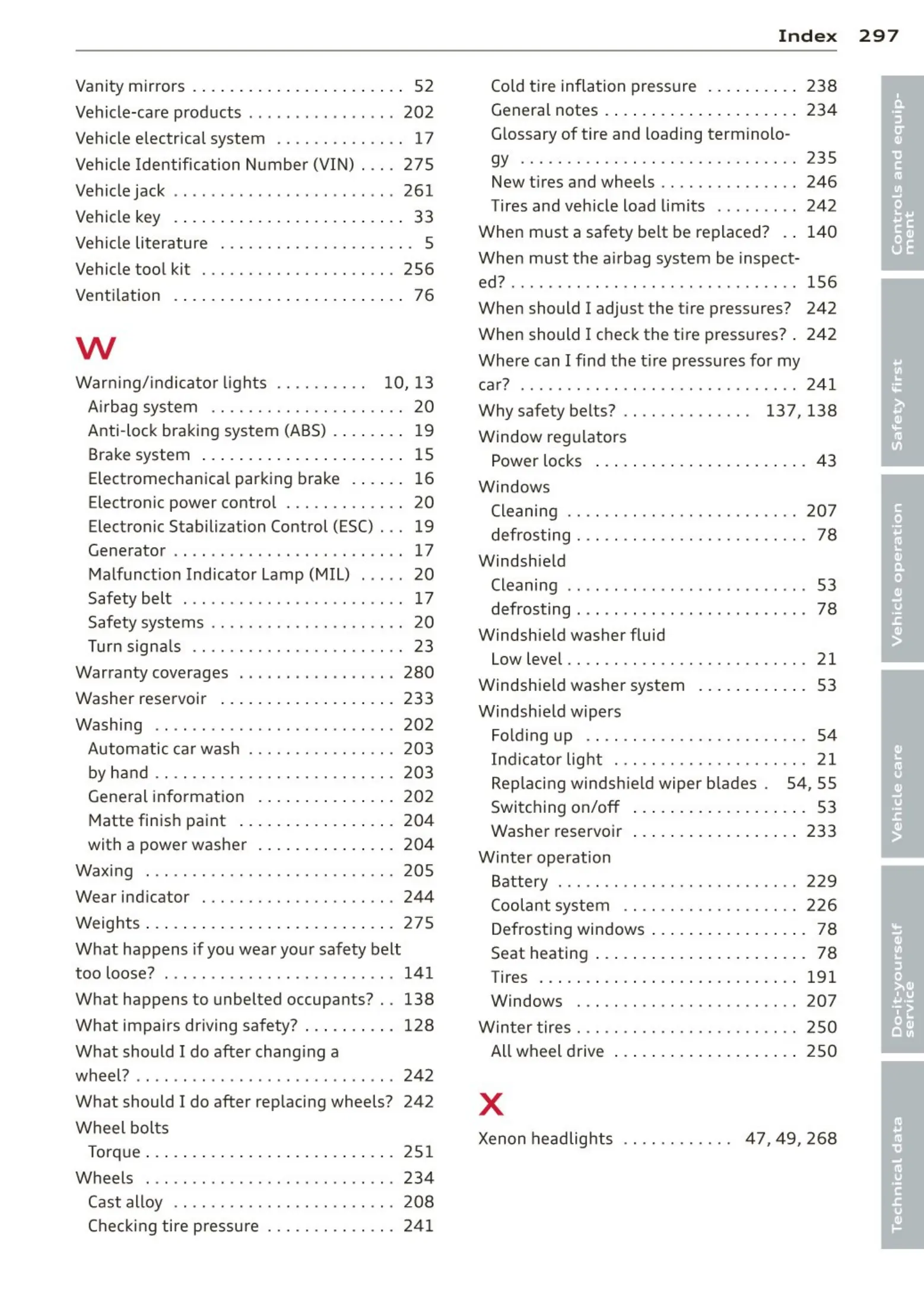 Xenon headlights . . . ... . ..... 4 7, 49, 268