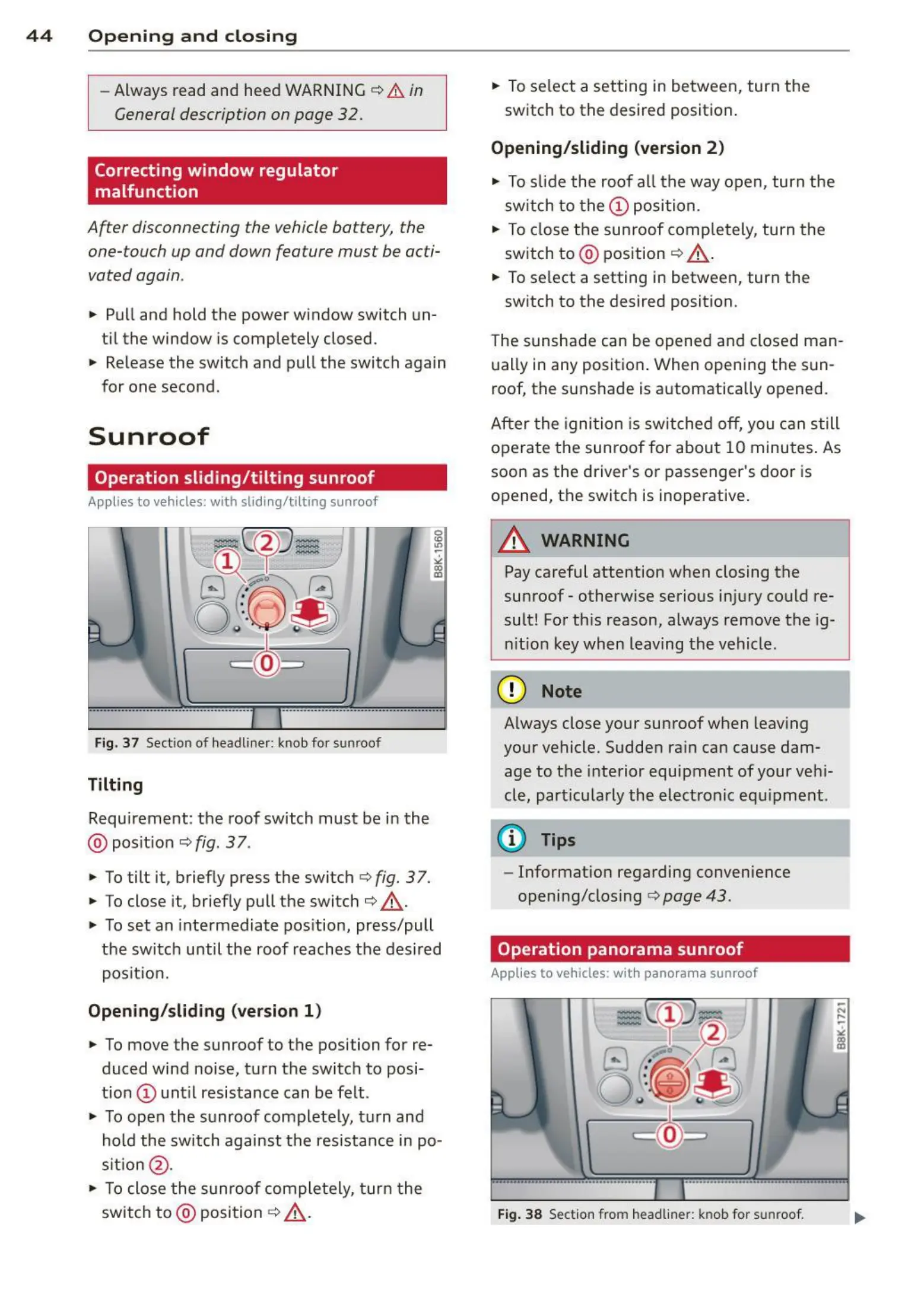 Applies to vehicles: with sliding/tilting sunroof