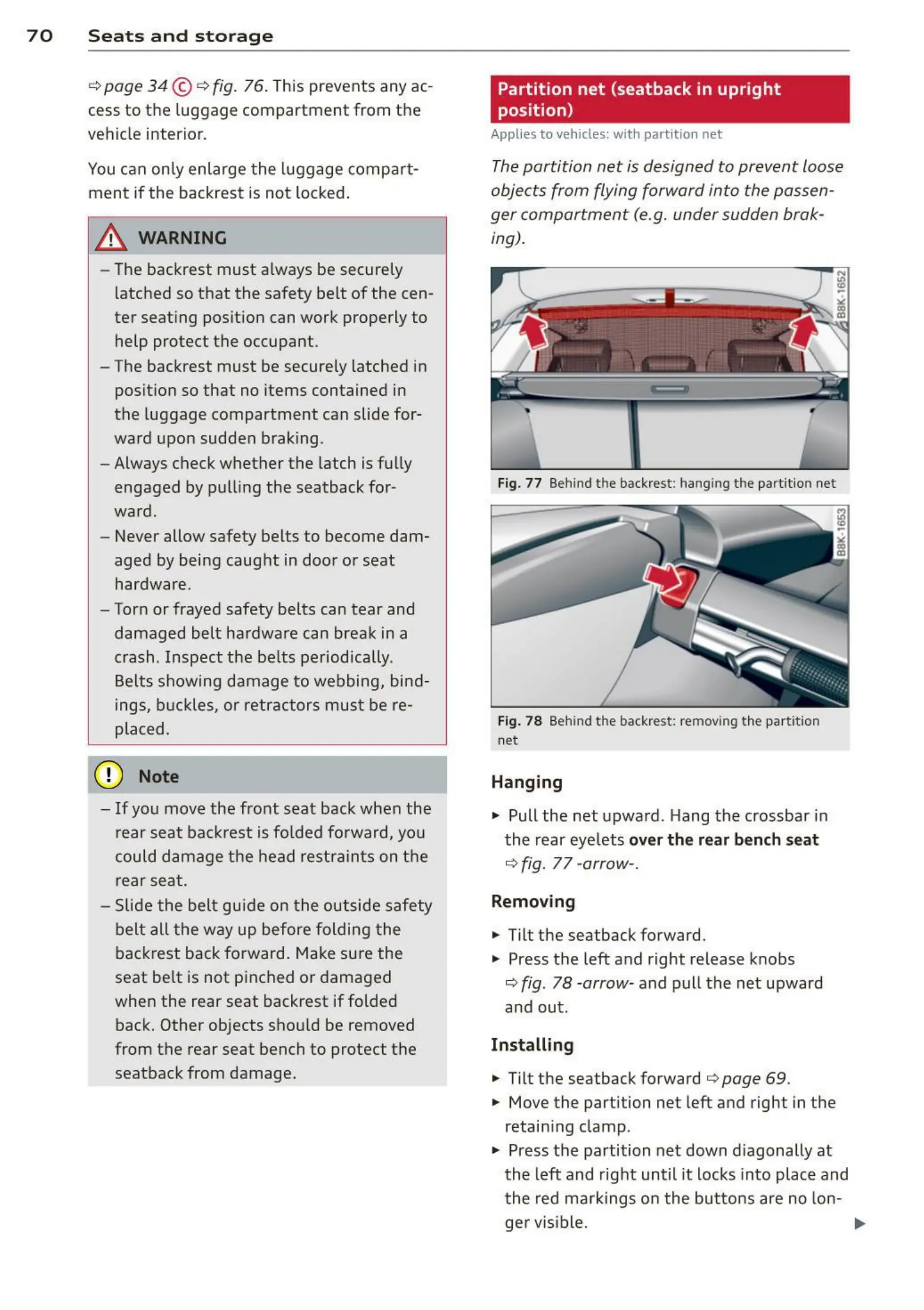 Fig. 77 Behind the backrest : hang ing the part ition net